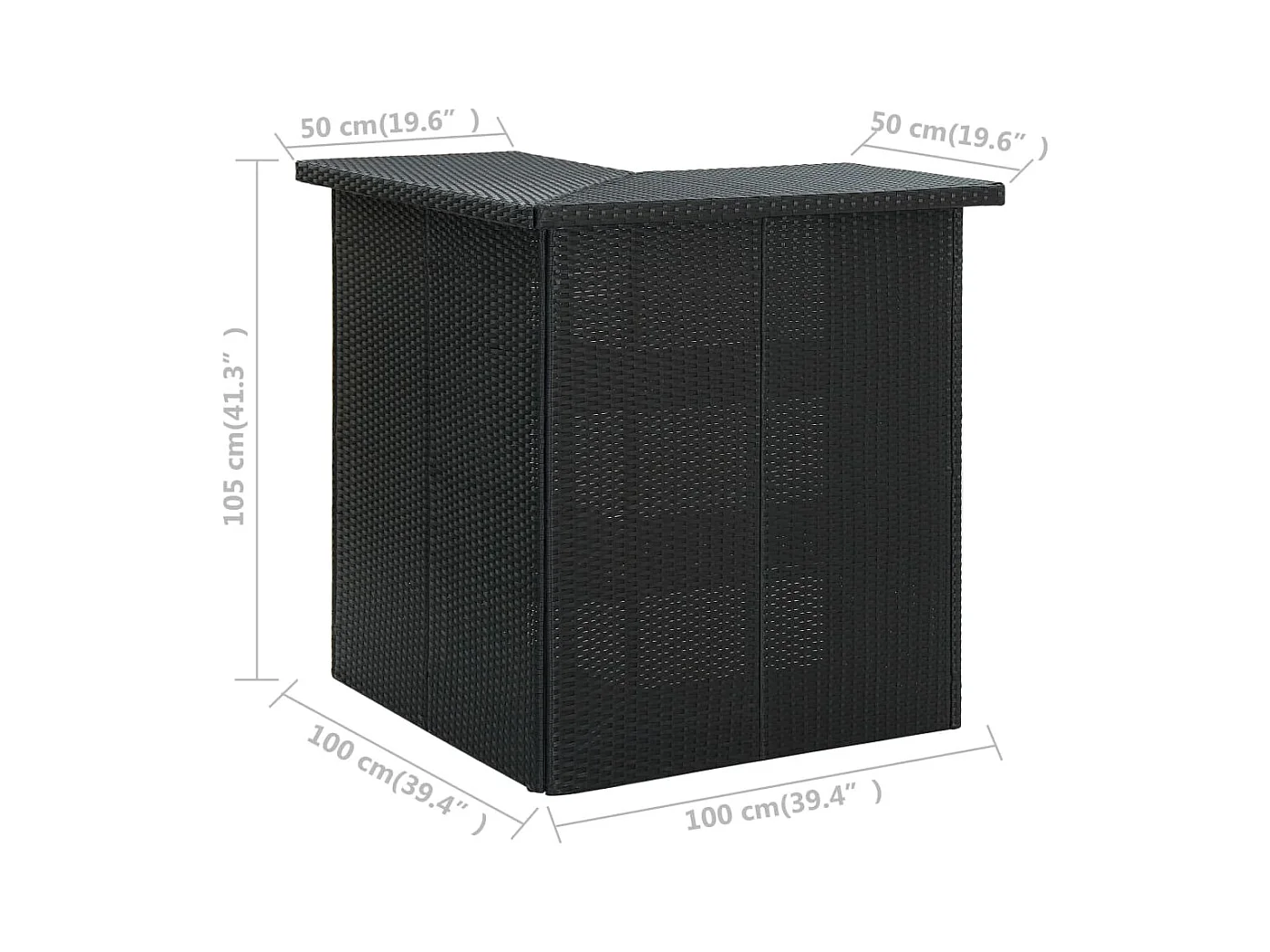 Table d'angle de bar Noir 100x50x105 cm Résine tressée