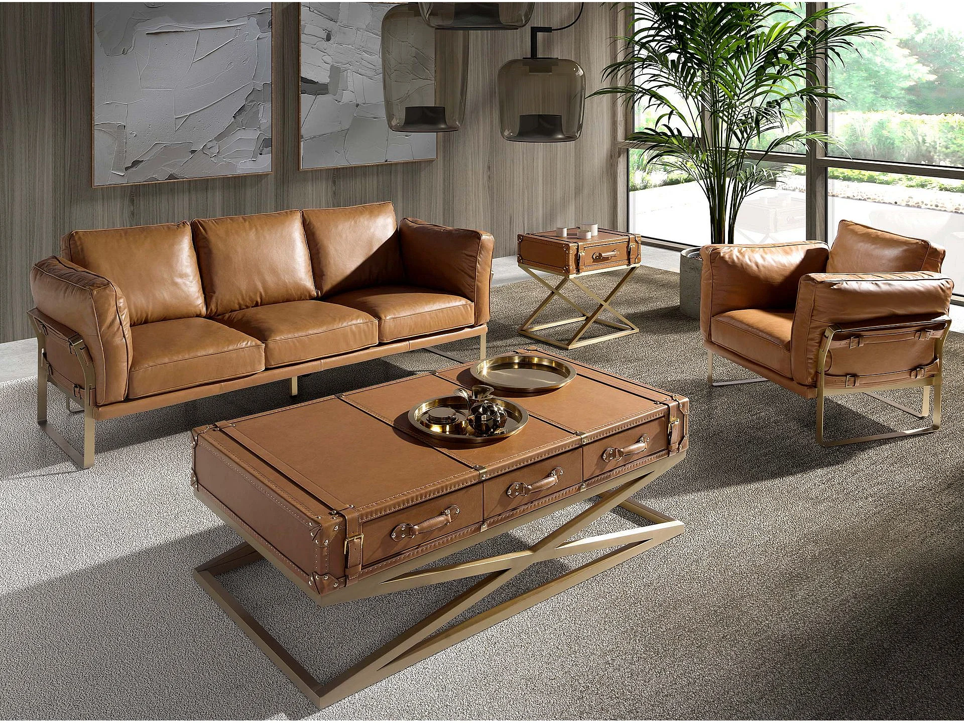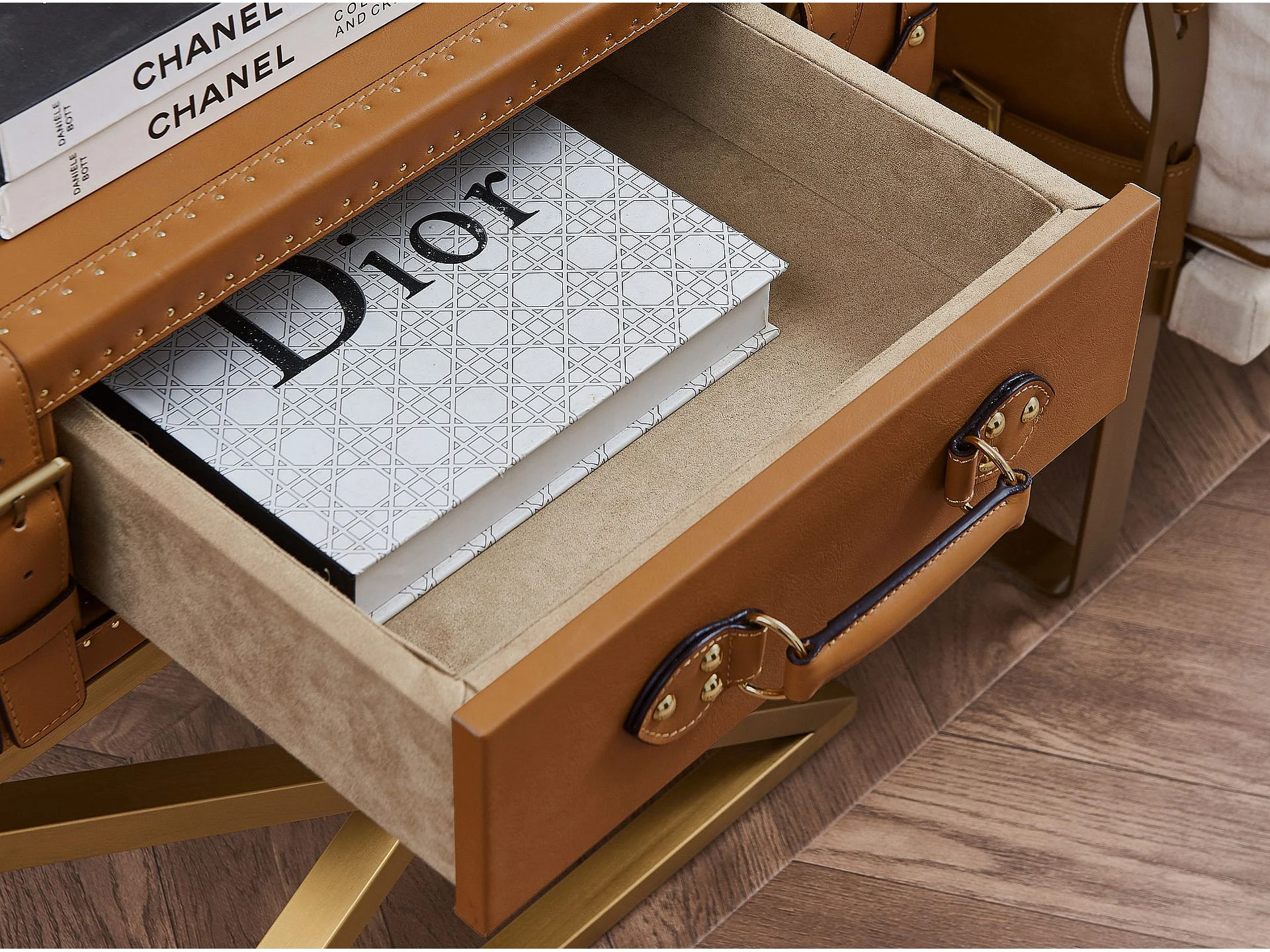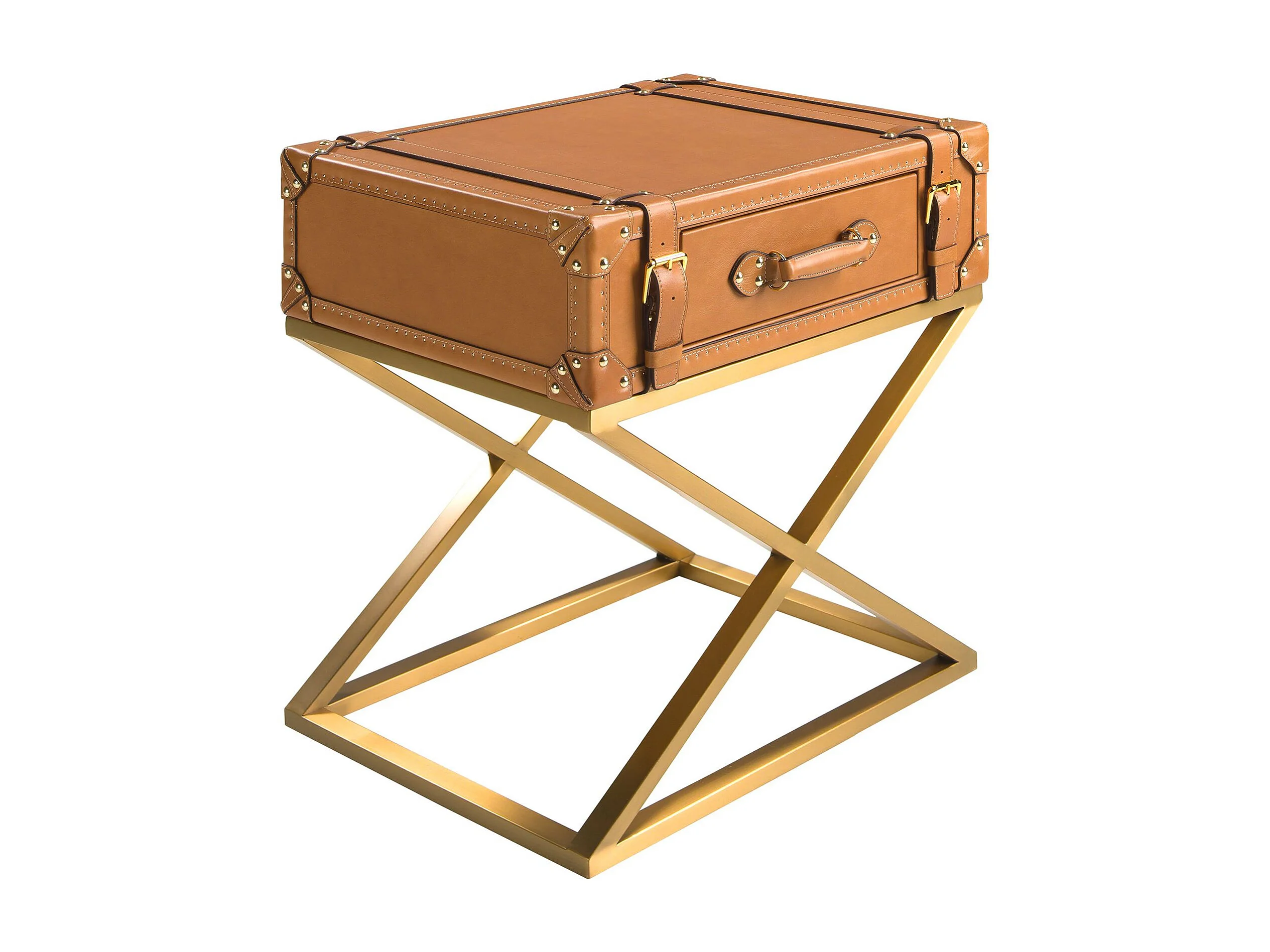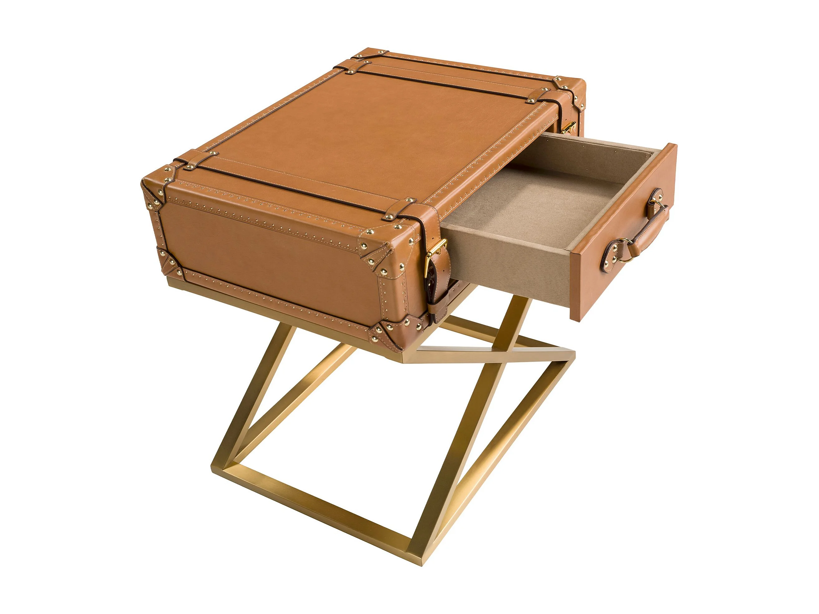 Table d'angle rectangulaire en cuir et acier doré 2148 ANGEL CERDA