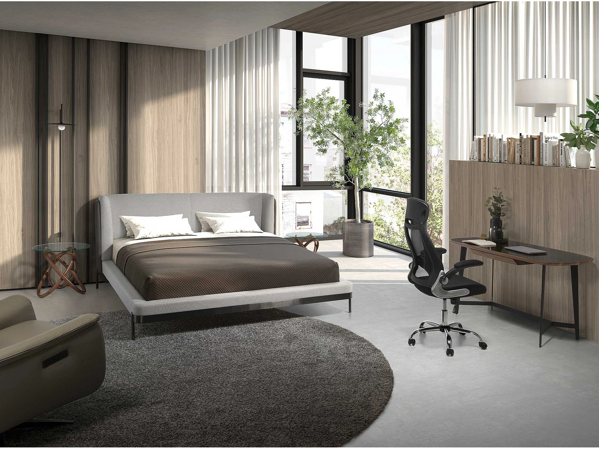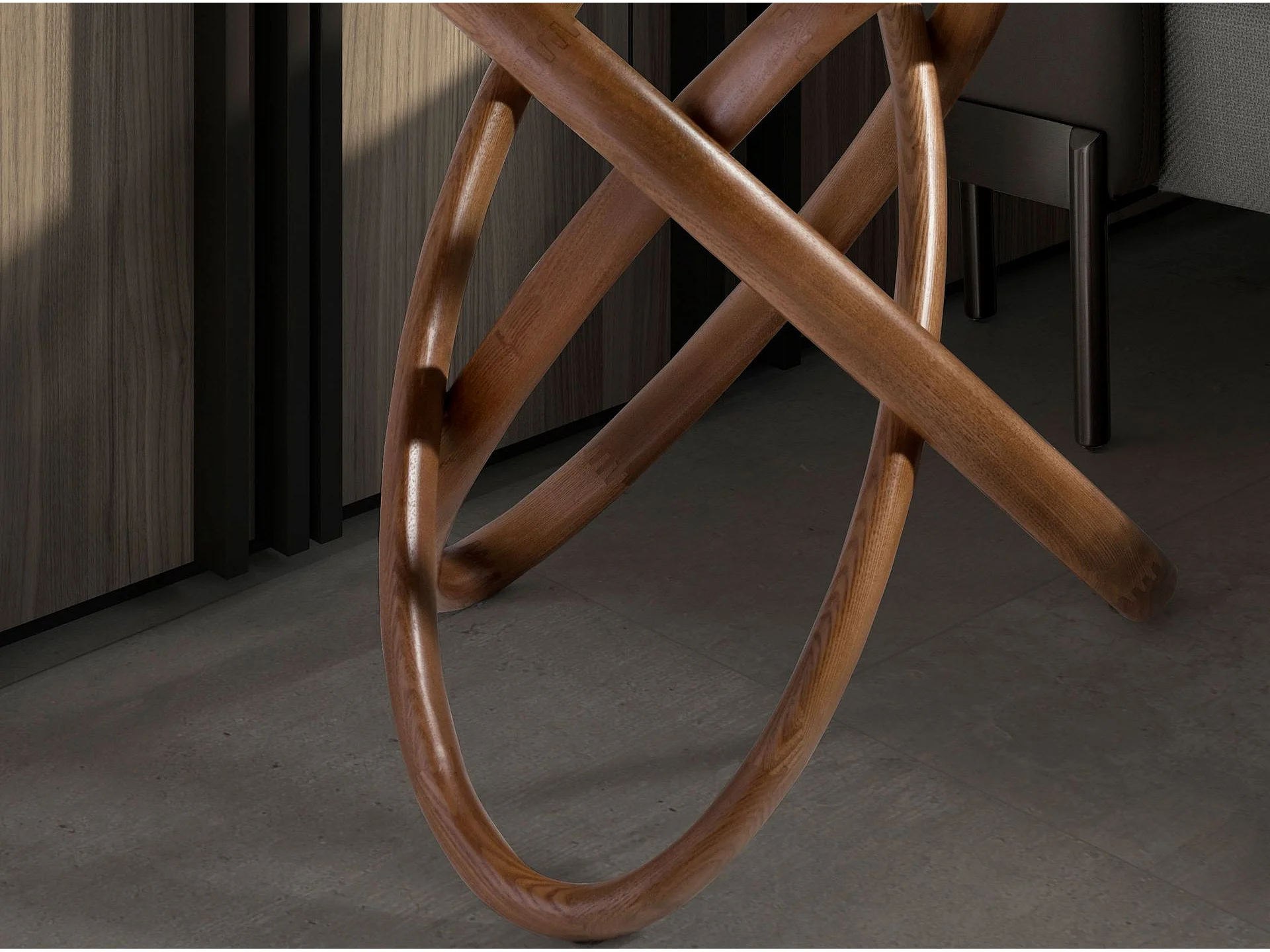 Table d'angle ronde en verre trempé et noyer 2125 ANGEL CERDA