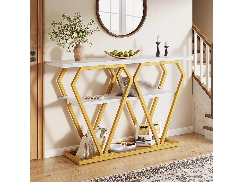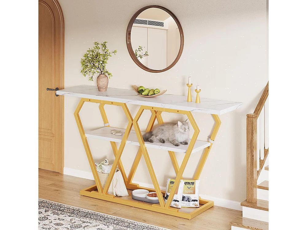 Table d'appoint (1) - 120 x 29,5 x 80 cm - Table de salle à manger, plateau en bois, plateau en marbre, blanc