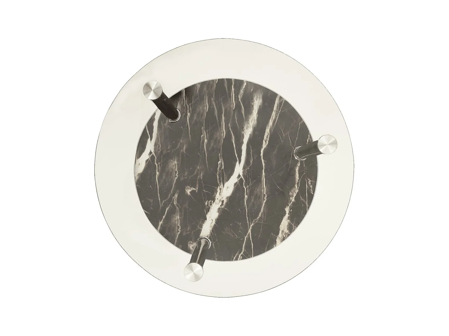 Table à thé Noir et marbre blanc 70 cm Verre trempé