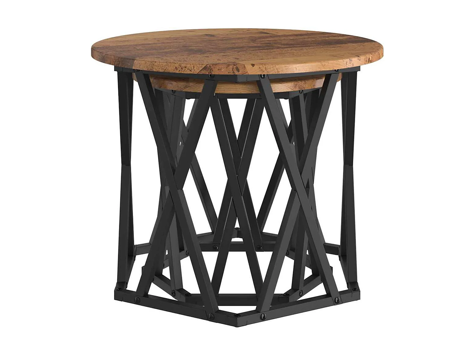 Ensemble de tables d'appoint 2 pièces Bois ancien et noir