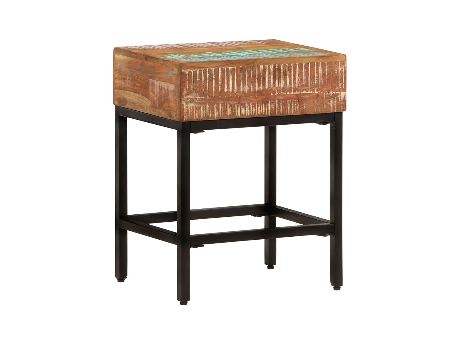 Table d'appoint 1 tiroir Bois de récupération massif 43x33x51cm