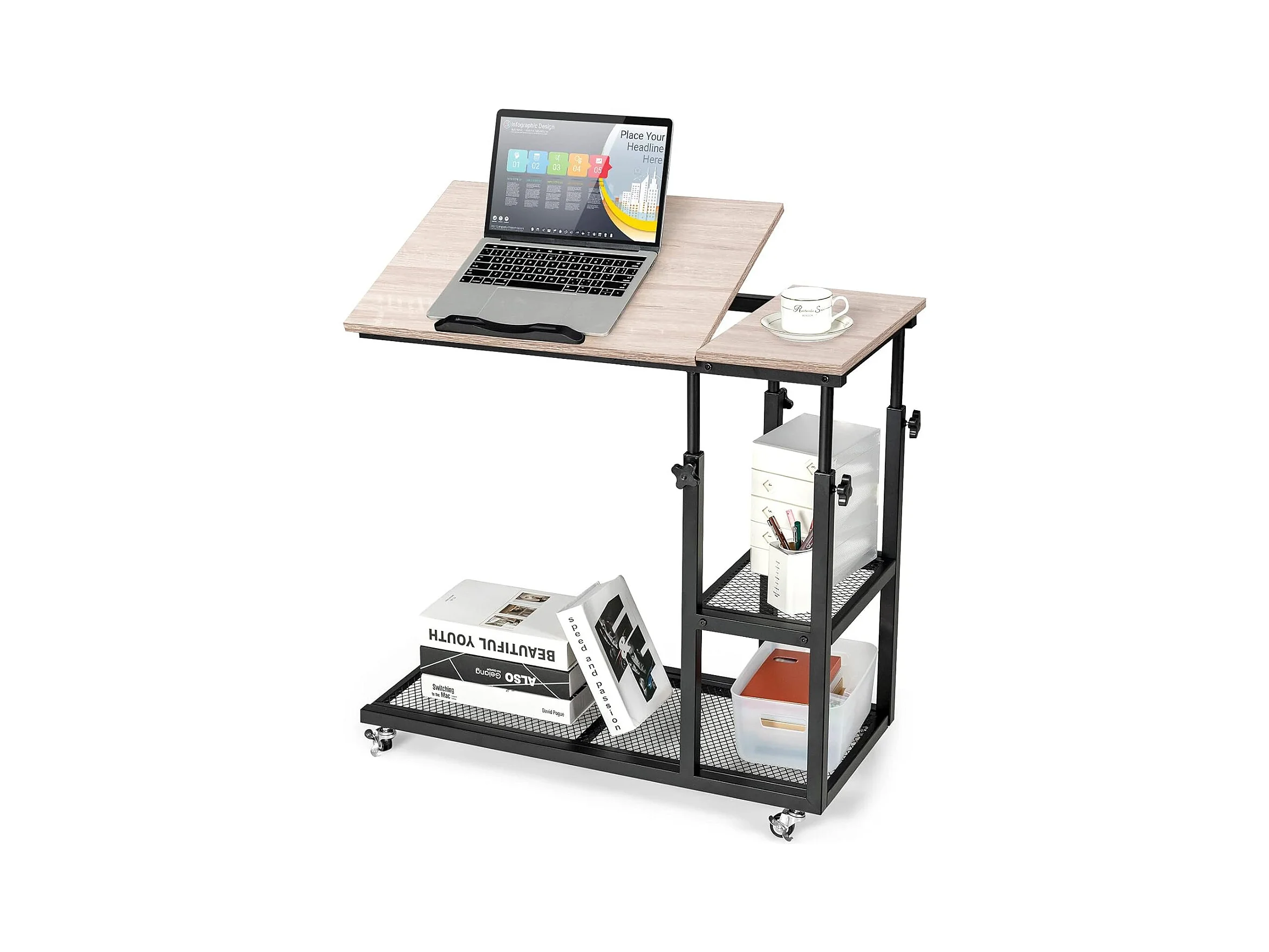 Table portable sur roulettes bureau de chevet mobile réglable en hauteur