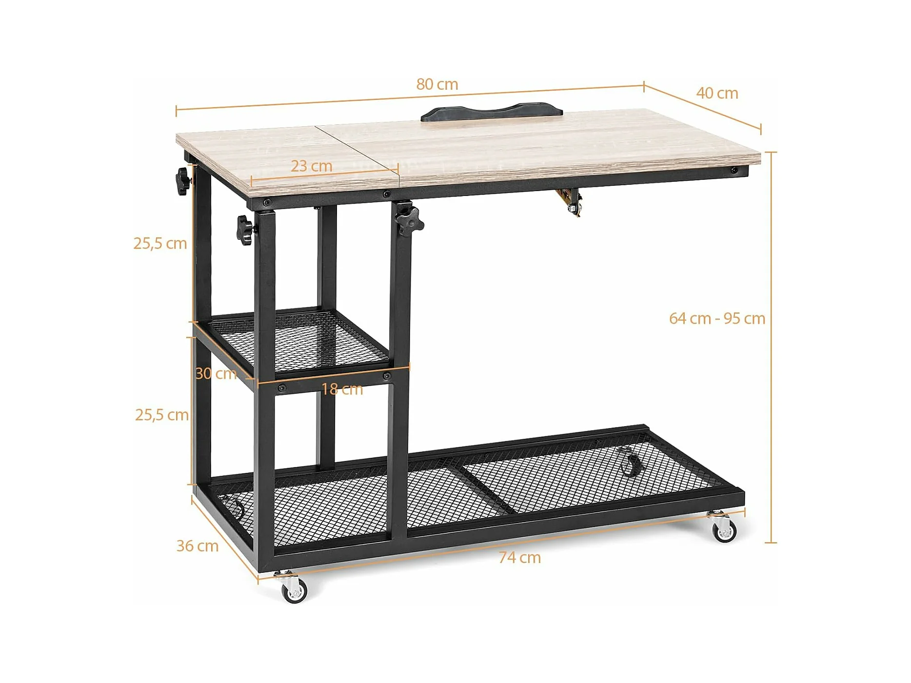 Table d’appoint à roulette avce plateau réglable, cadre en acier, (brun clair)