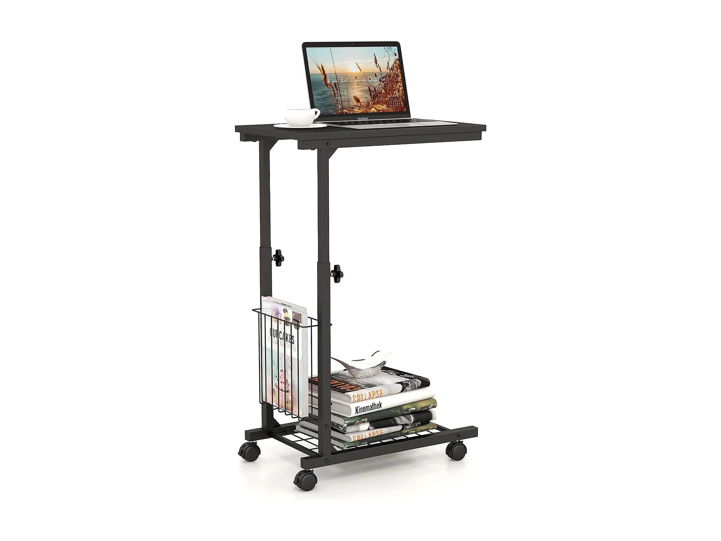 Table d'appoint à roulettes, avec porte-revues, hauteur réglable 58-80 cm (noir)