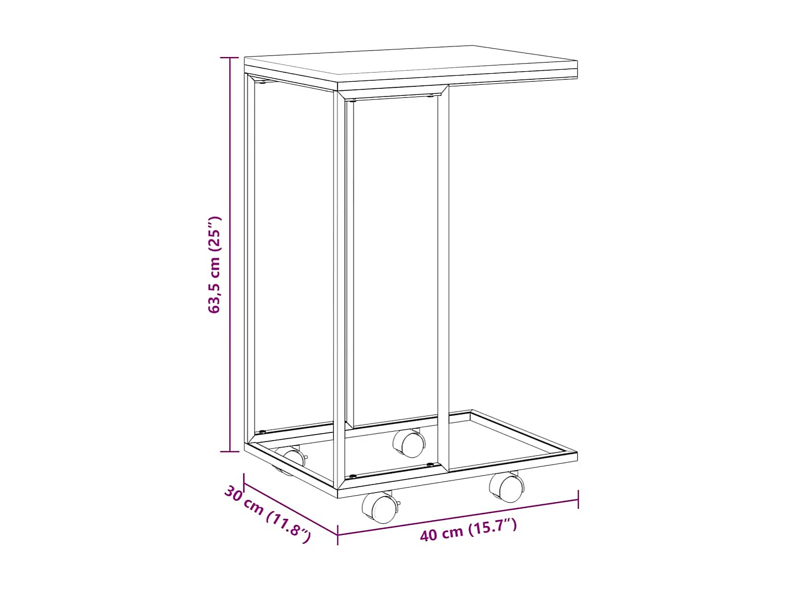 Table d'appoint avec roues Noir 40x30x63,5 cm Bois d'ingénierie