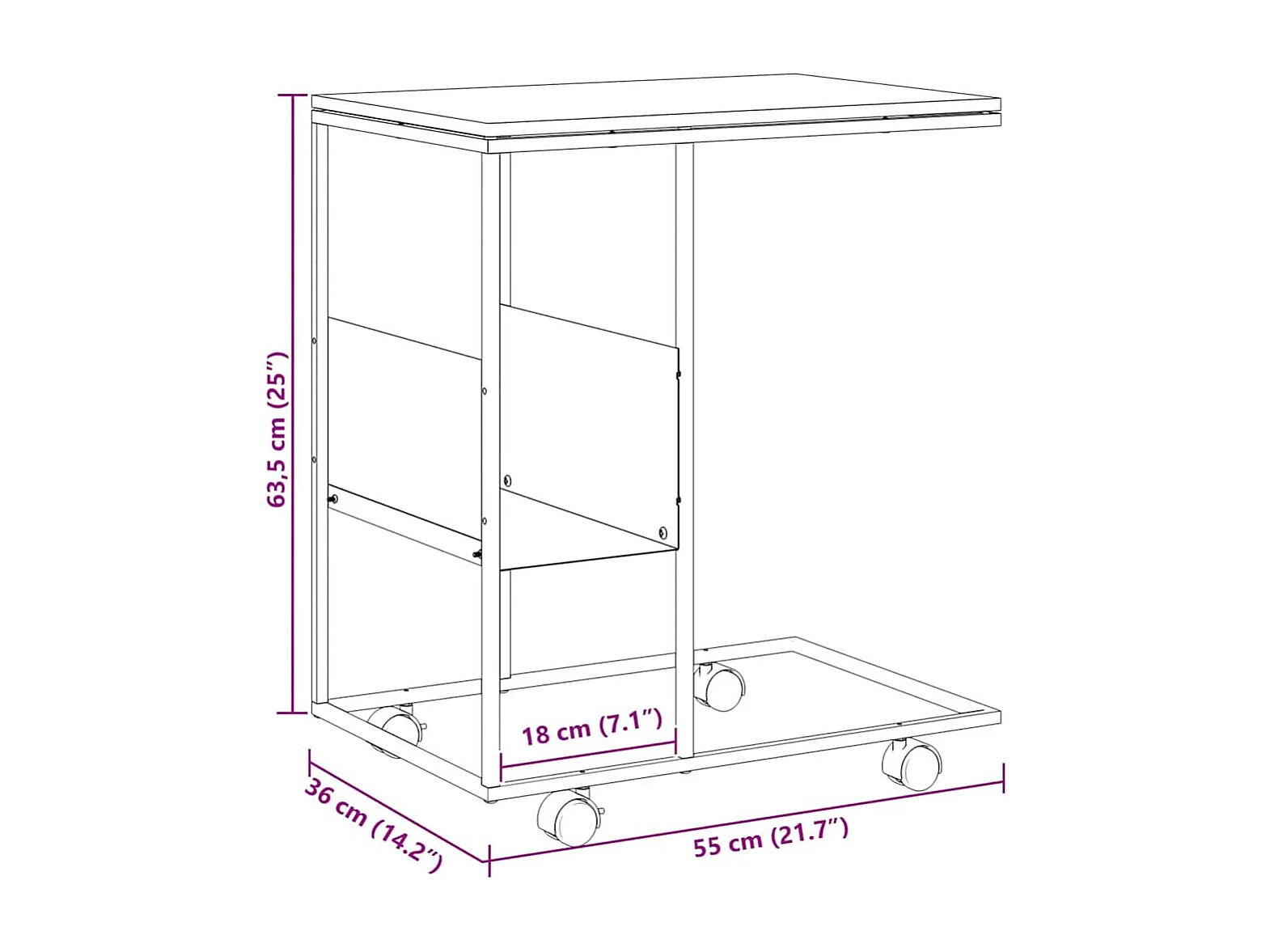 Table d'appoint avec roues noir 55x36x63,5 cm bois d'ingénierie