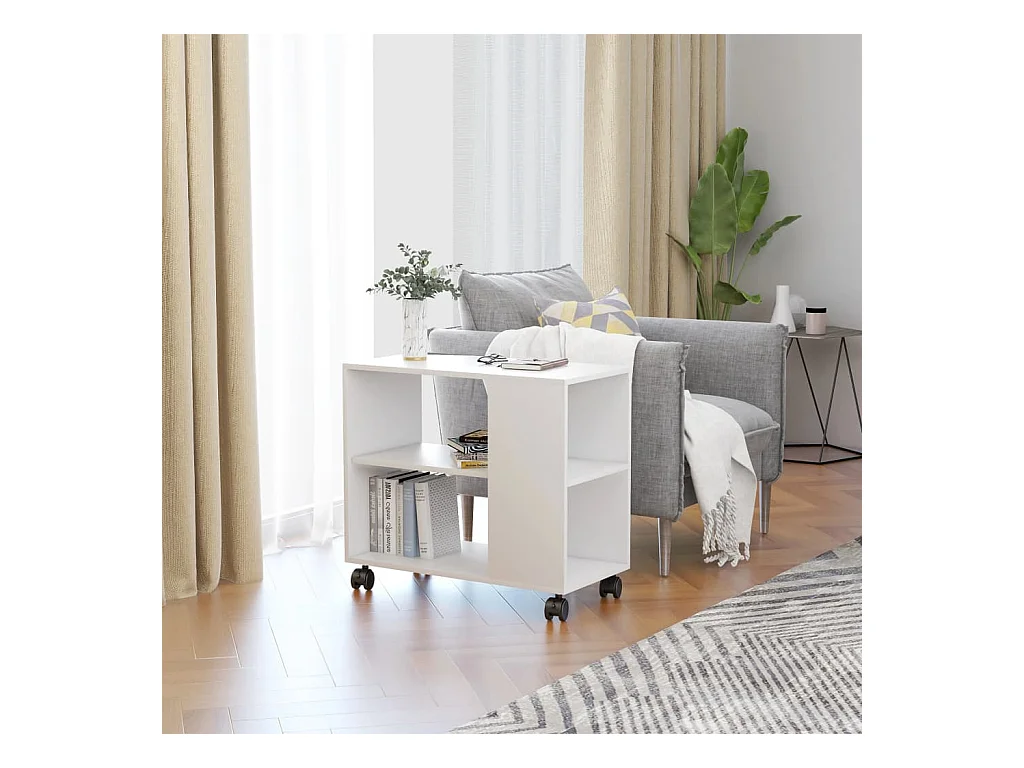 Table d'appoint avec roues Blanc 55x35x70 cm Bois d'ingénierie