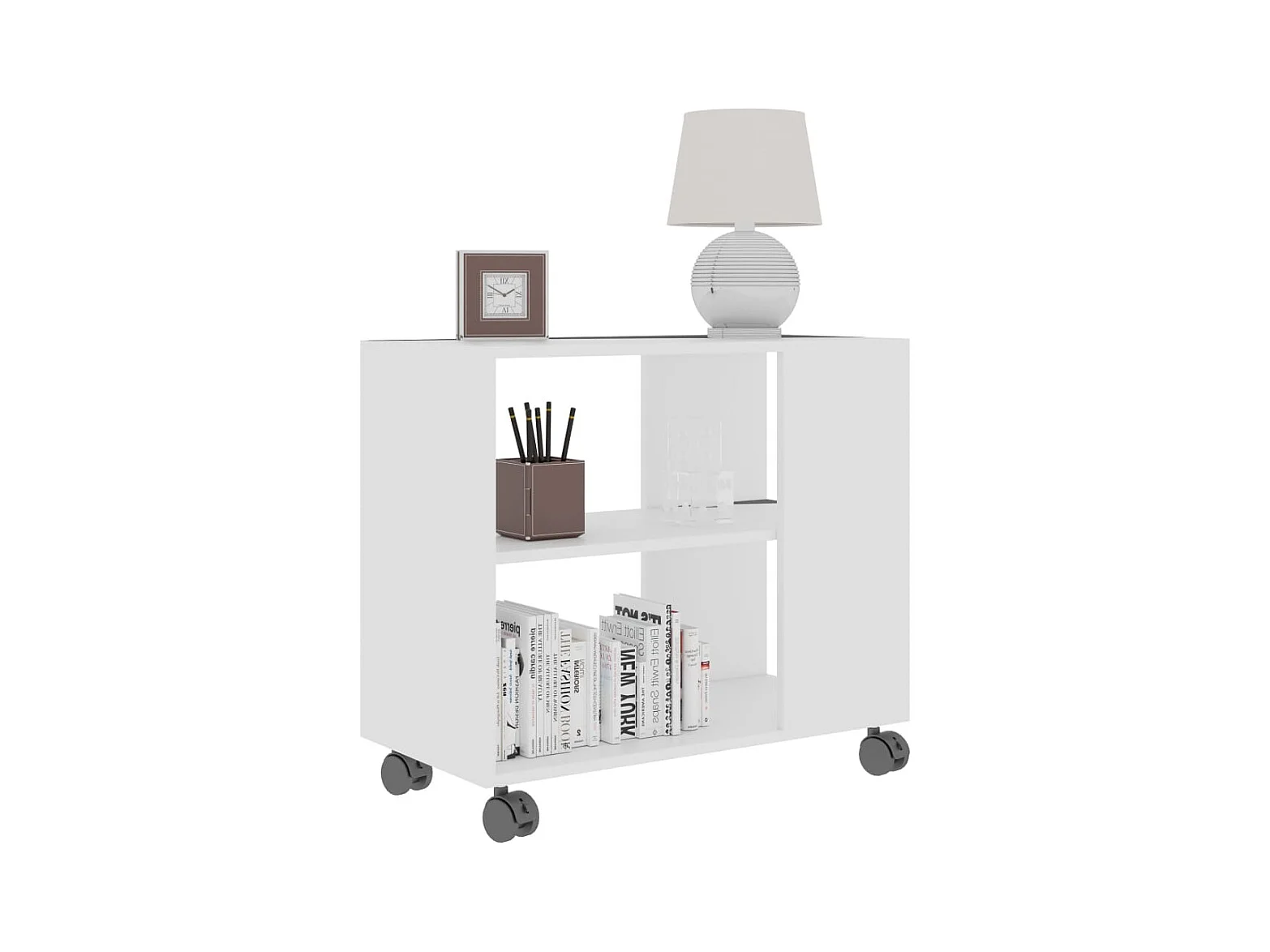 Bout De Canapé Table Café Roulante Avec 2 Étagères De Rangement Bibliothèque À Roulettes, Fbt34-w