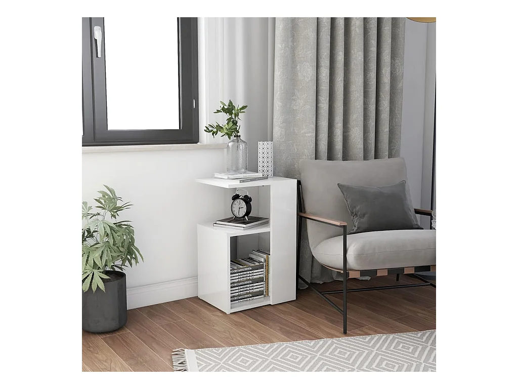 Table basse Blanc brillant 36x30x56 cm Aggloméré GHR32725
