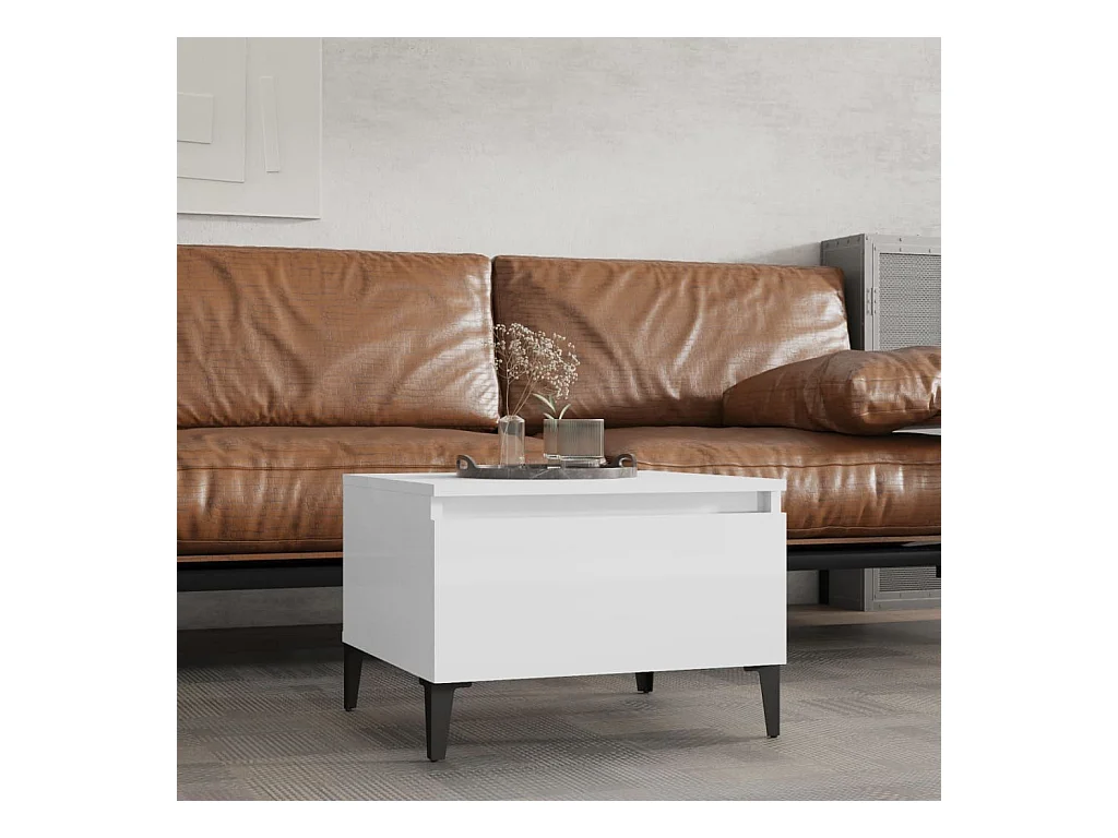 Table d'appoint Blanc brillant 50x46x35 cm Bois d'ingénierie