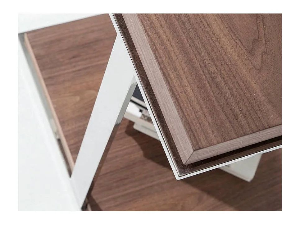 Table d'appoint carrée bois plaqué noyer et acier inoxydable Launa