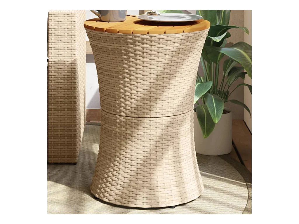 Table de jardin beige 70x38x42 cm résine tressée et bois acacia FR867452
