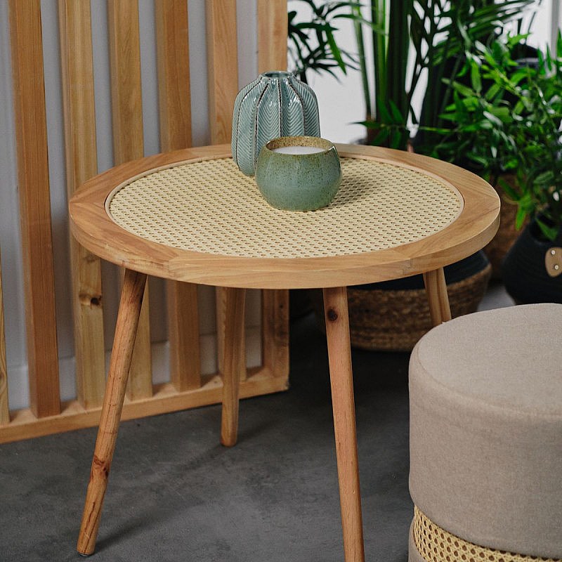 Table d'appoint en bois de couleur naturelle. 60x45cm