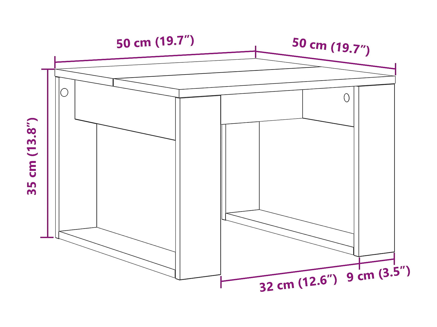 Table d'appoint en chêne noir - 50x50x35 cm, en bois d'ingénierie