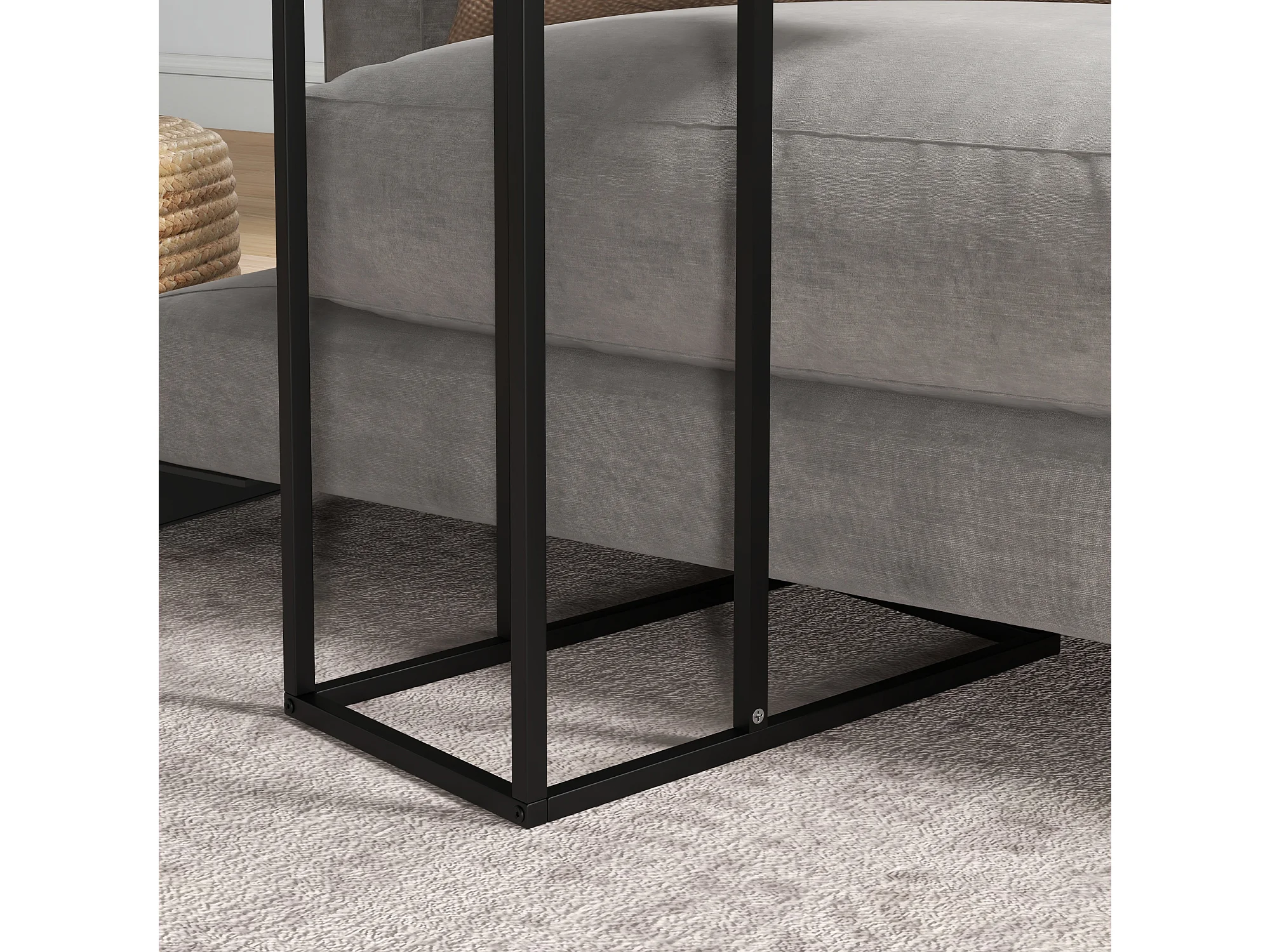Table d'appoint en forme de C, acier noir, pour canapé et lit (46x26x60cm)