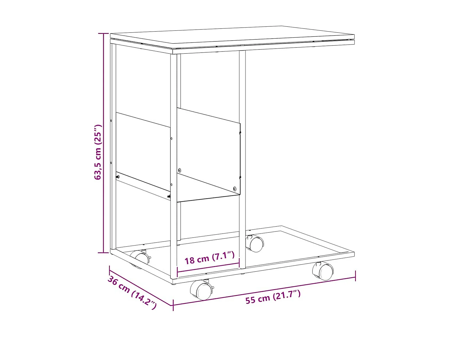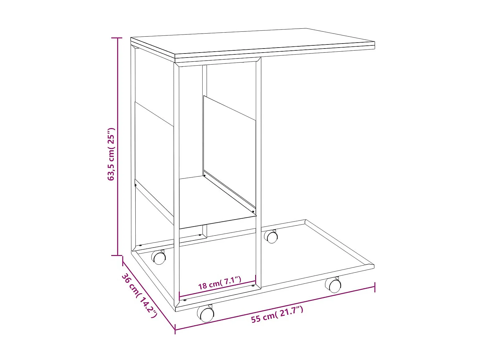 Table d'appoint avec roues blanc 55x36x63,5cm bois d'ingénierie