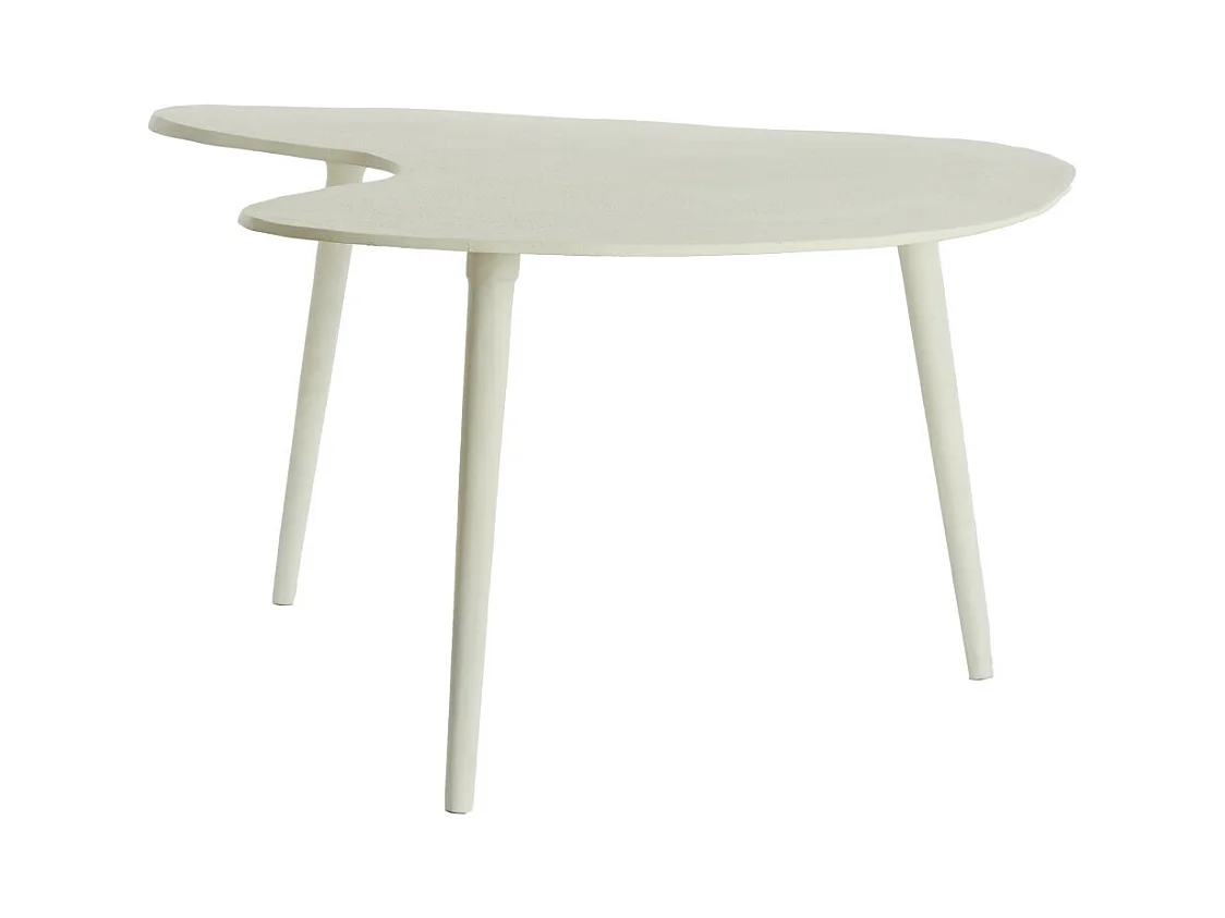 Table basse design forme nuage, plateau MDF, 1 tiroir, pieds avec feutrine, blanc (110x60x37.5cm)