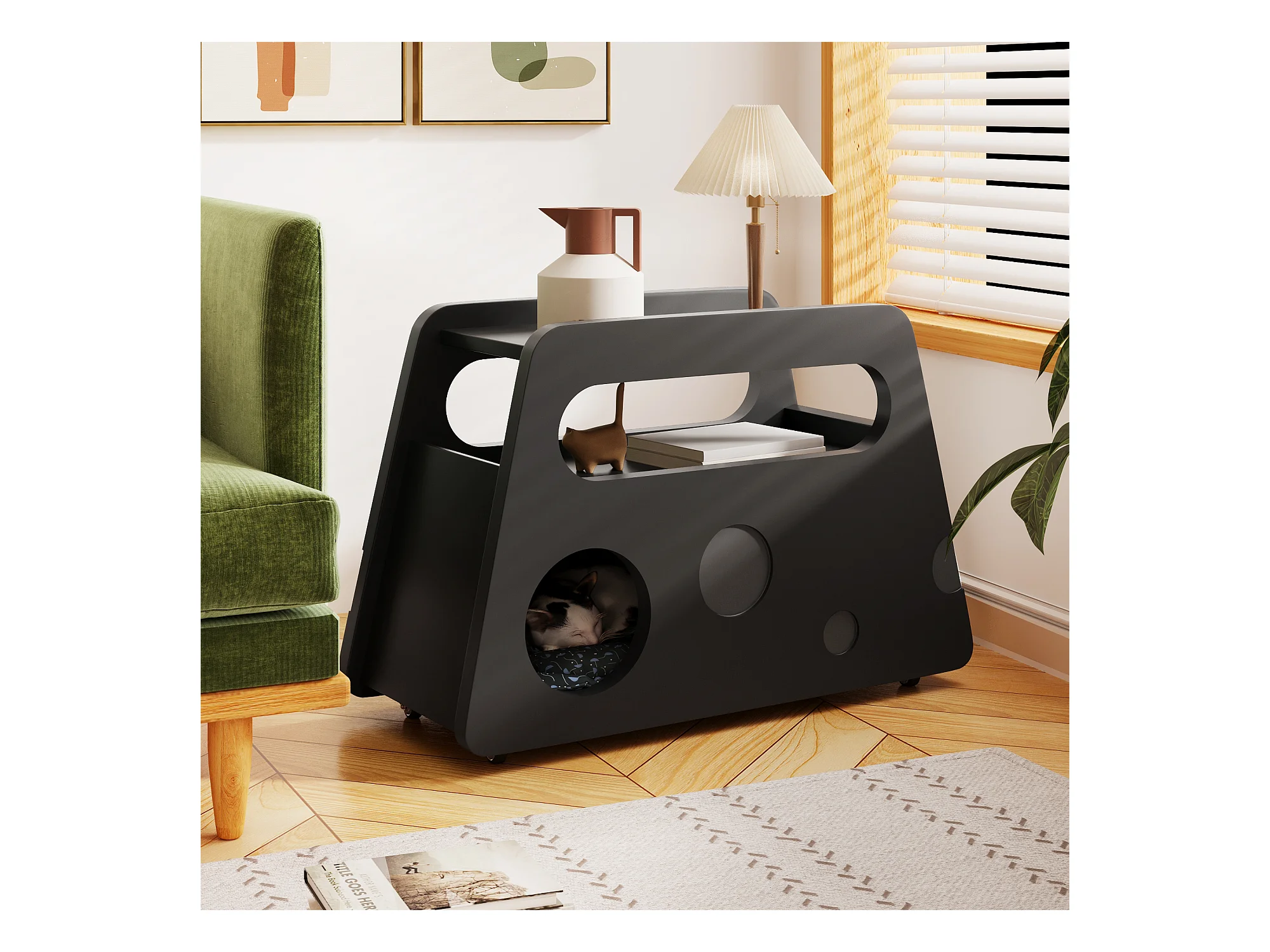 Table d'appoint moderne avec roulettes, design sécurisé et fonctionnel, Noir, MDF, (81x33x51.5 cm)
