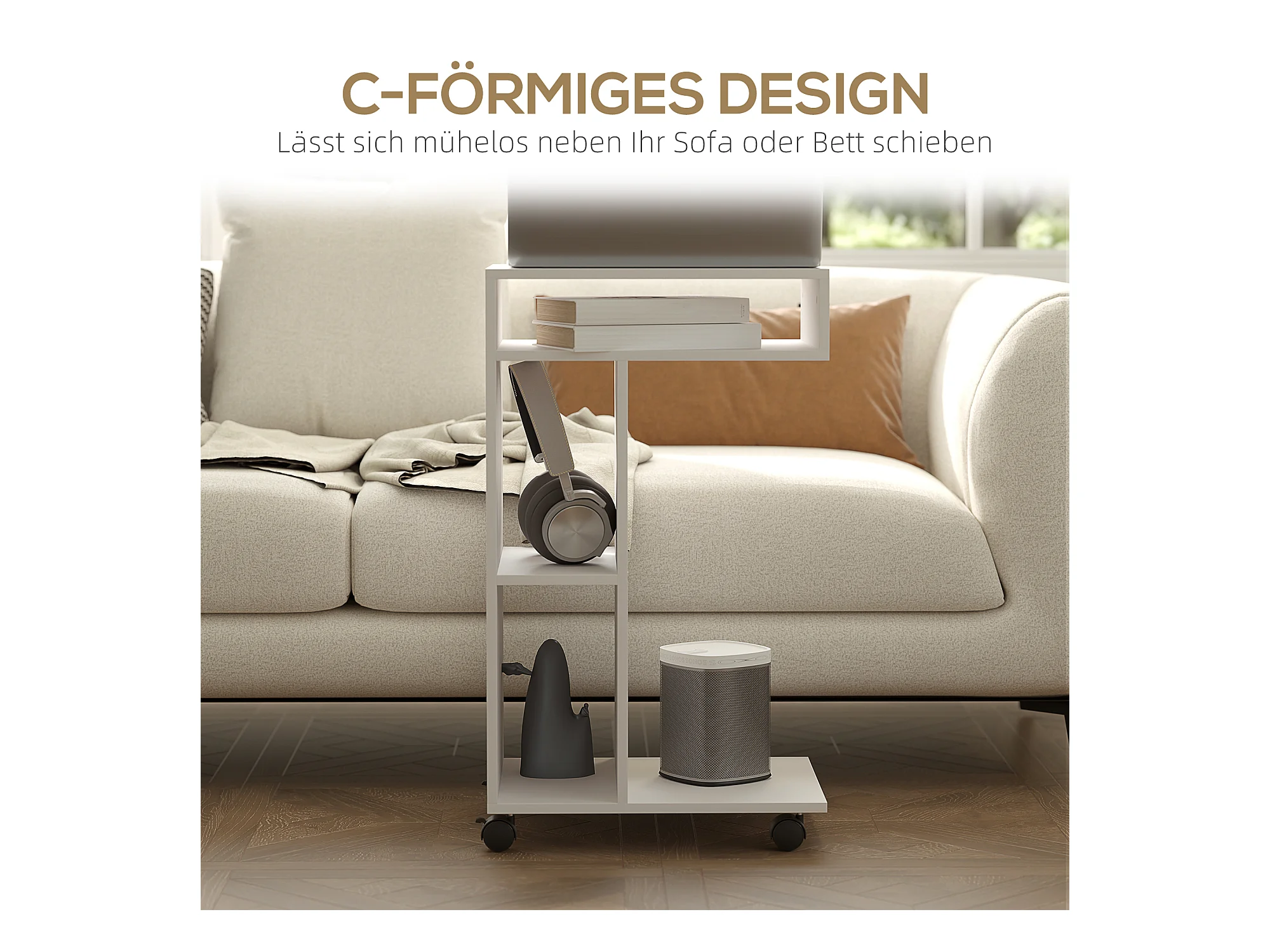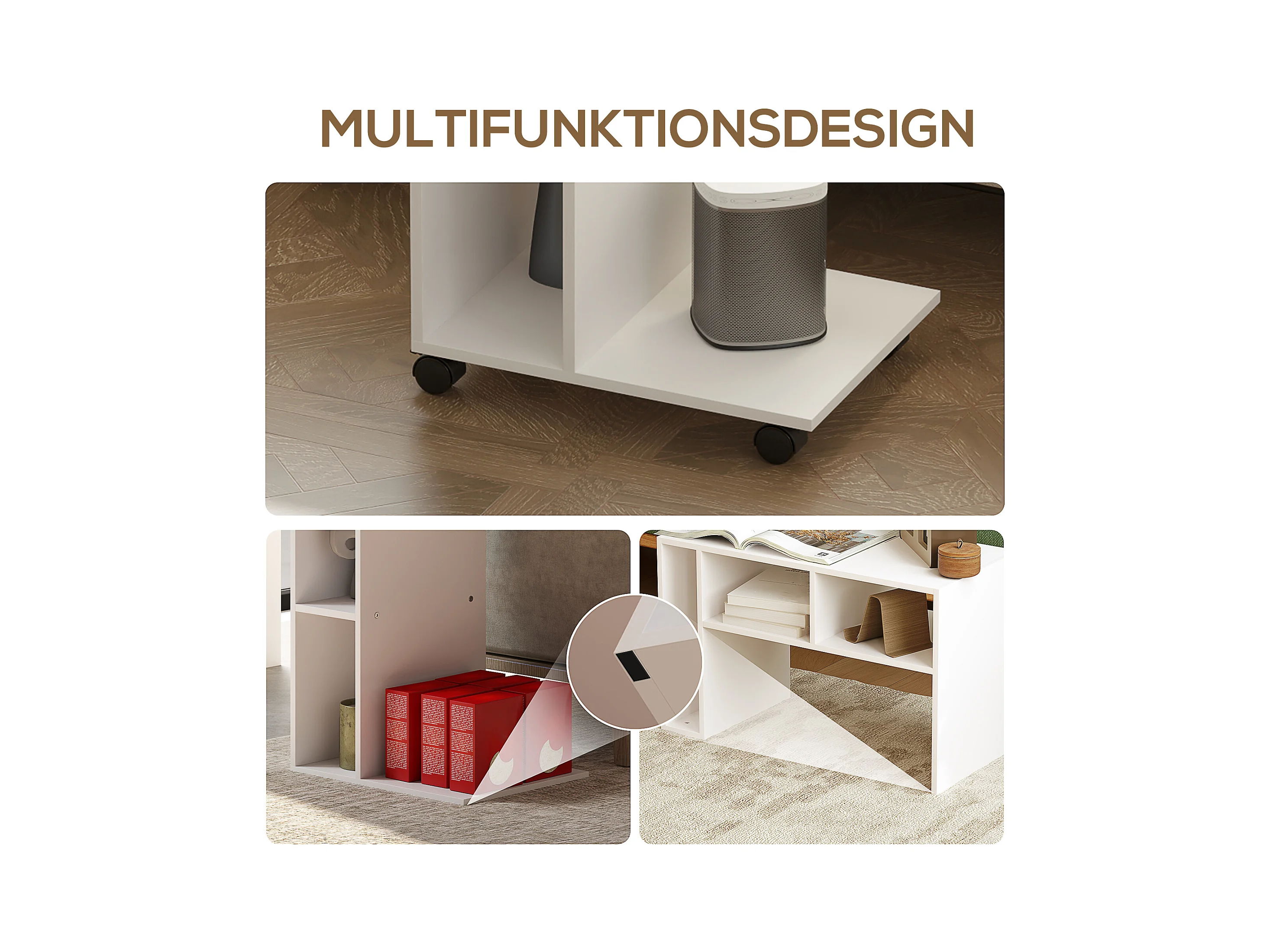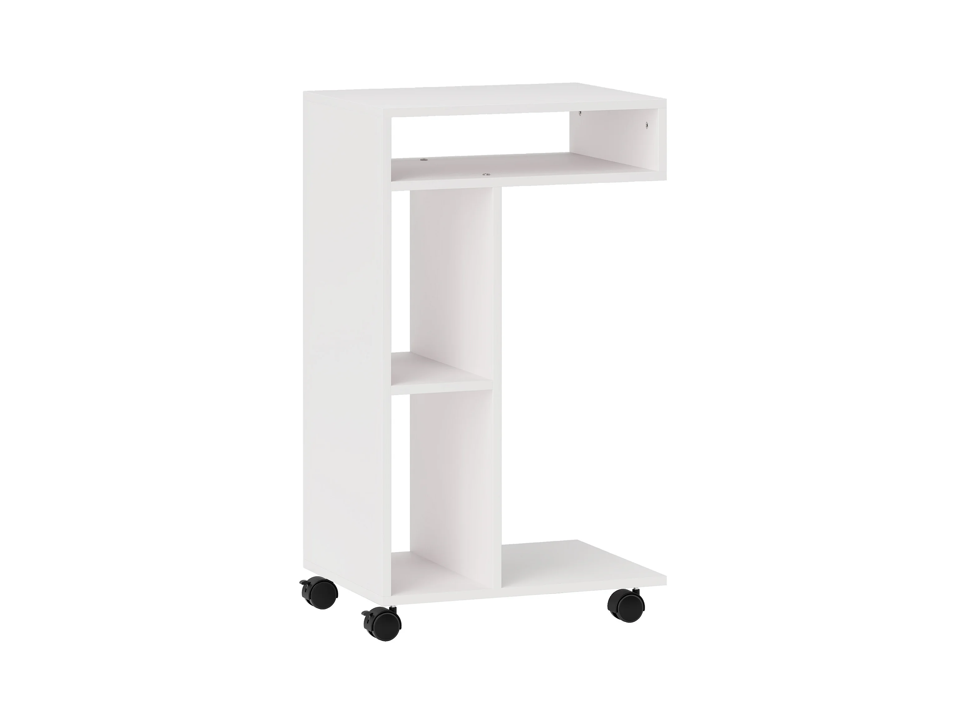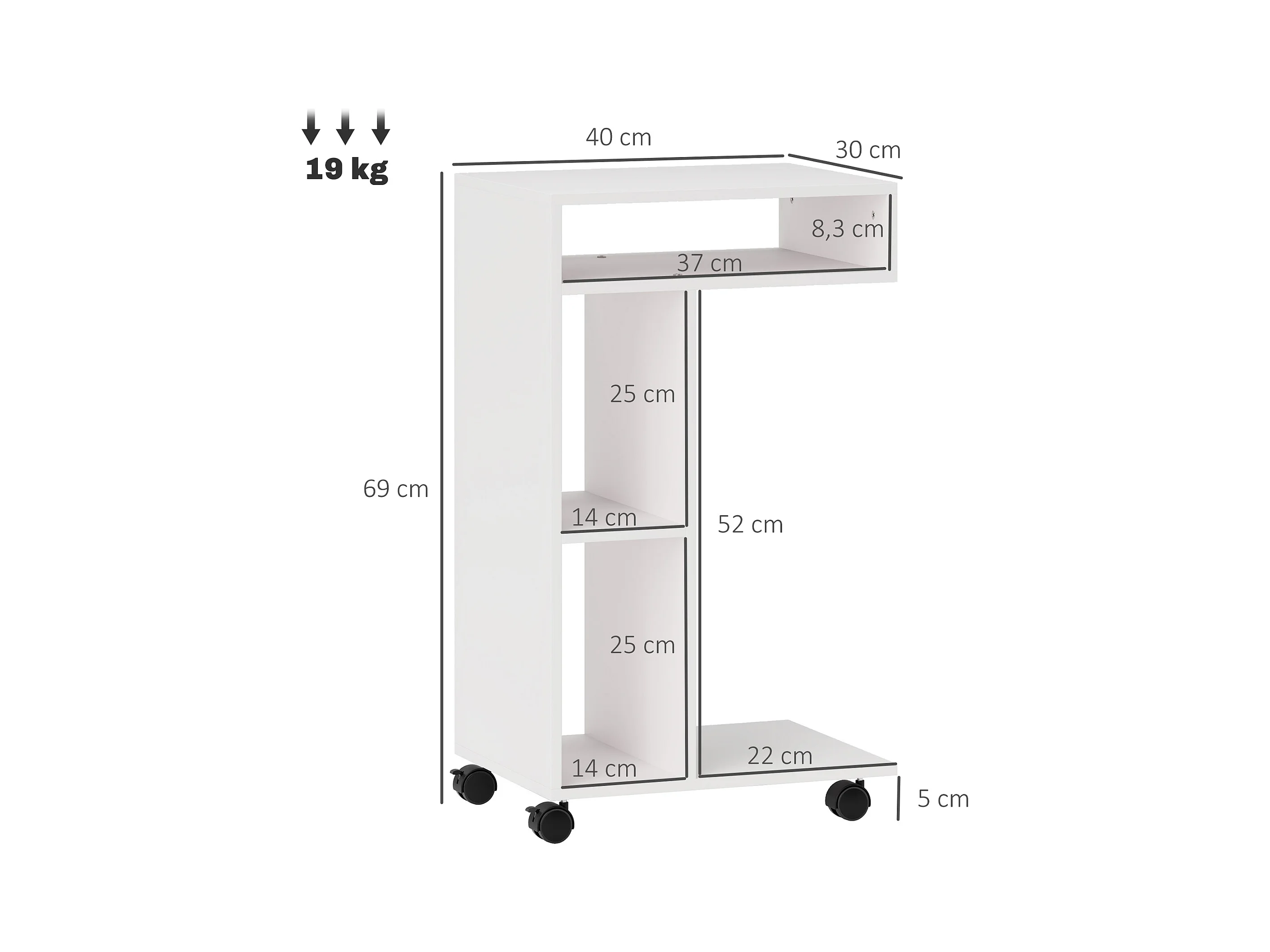 Table d'appoint multifonction avec roulettes, 4 étagères, contreplaqué mélaminé, blanc (40x30x69 cm)