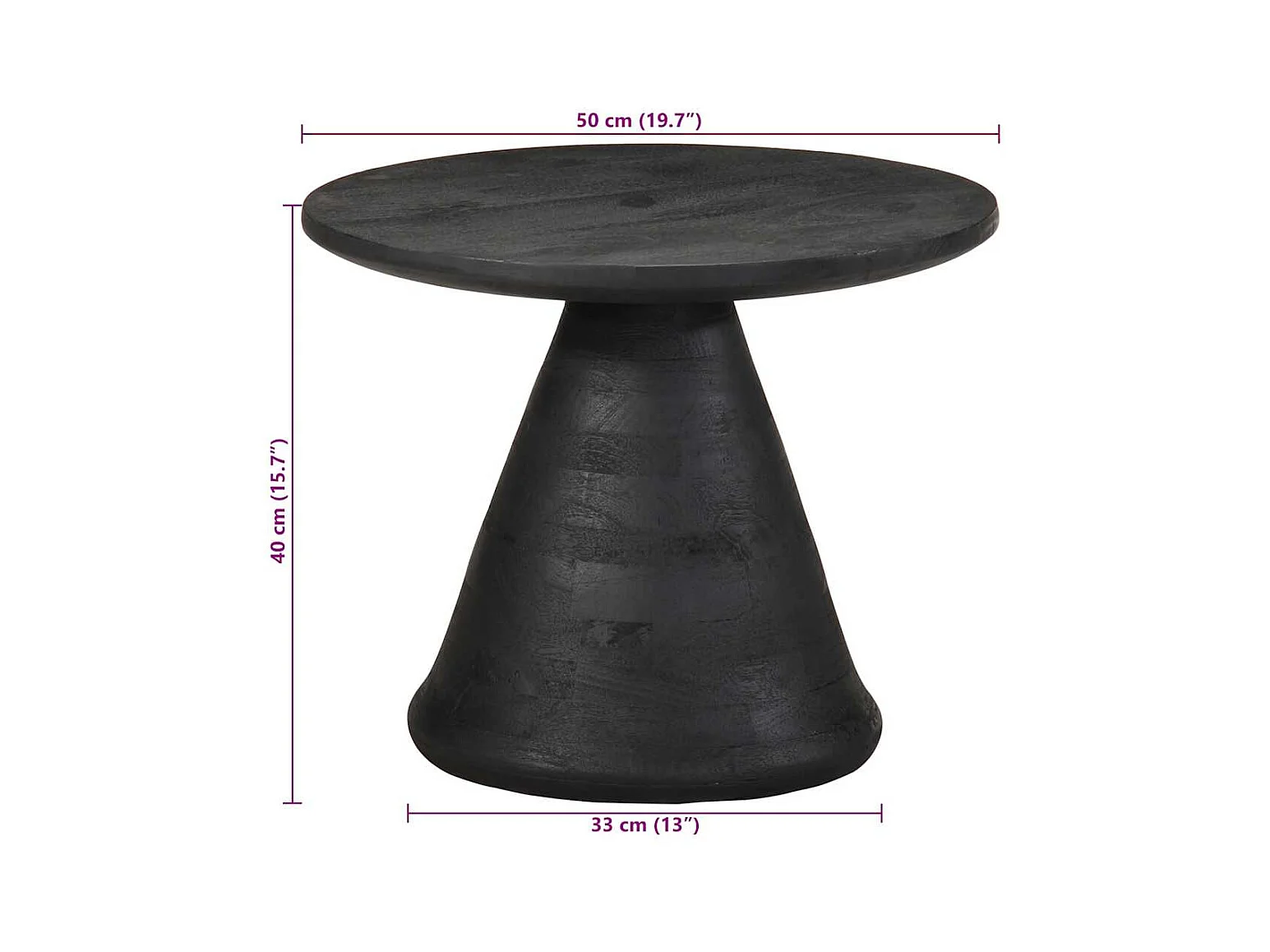 Table d'appoint noir Ø50x40 cm bois de manguier massif