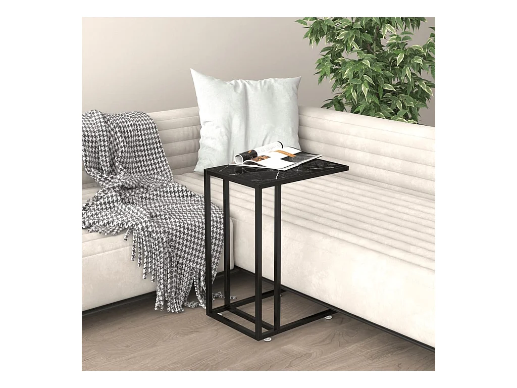 Table d'appoint ordinateur Marbre noir 50x35x65 cm Verre trempé