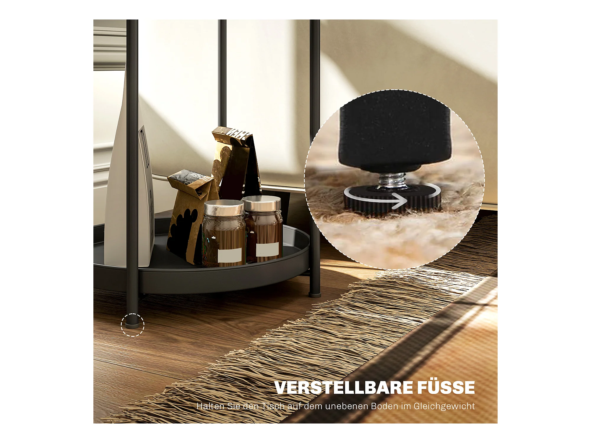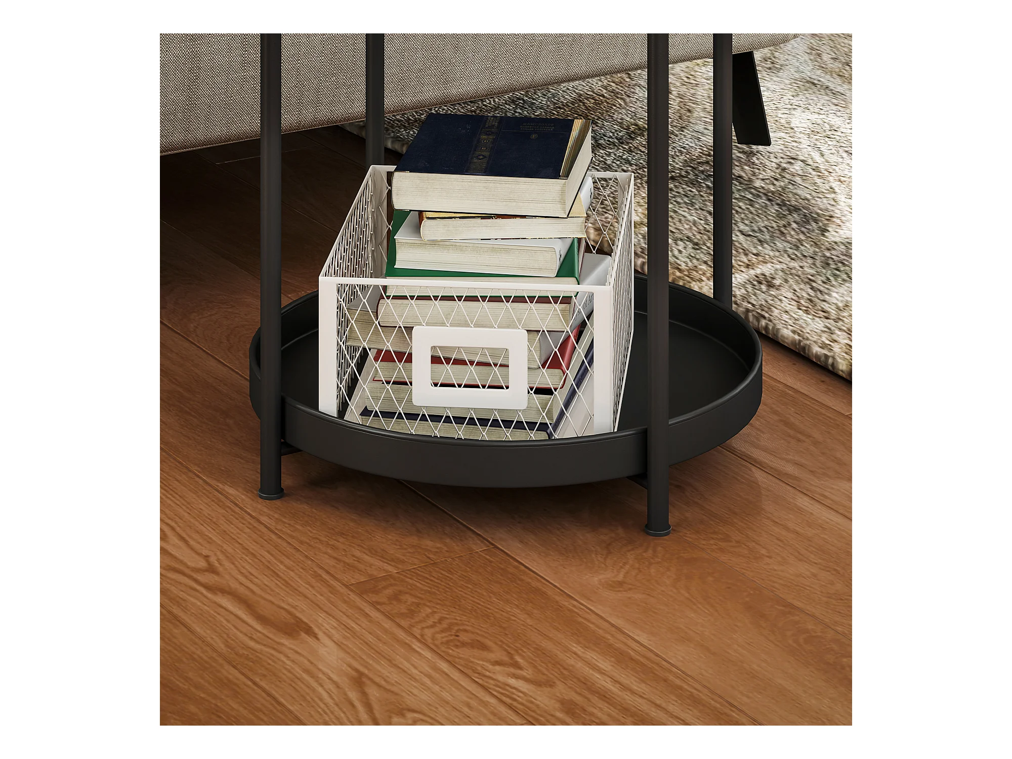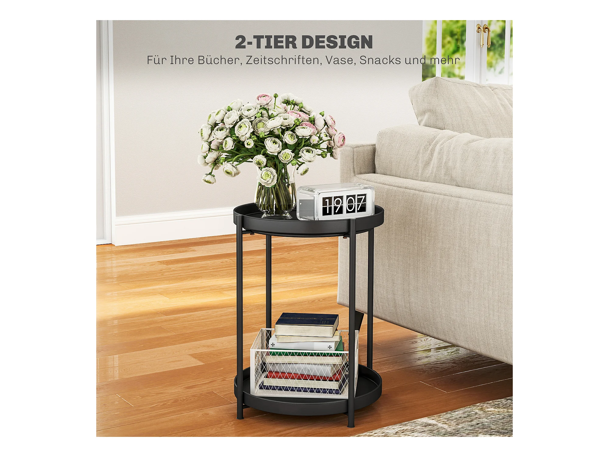 Table d'appoint ronde à 2 étagères, acier noir, pour salon et chambre (44x44x56cm)