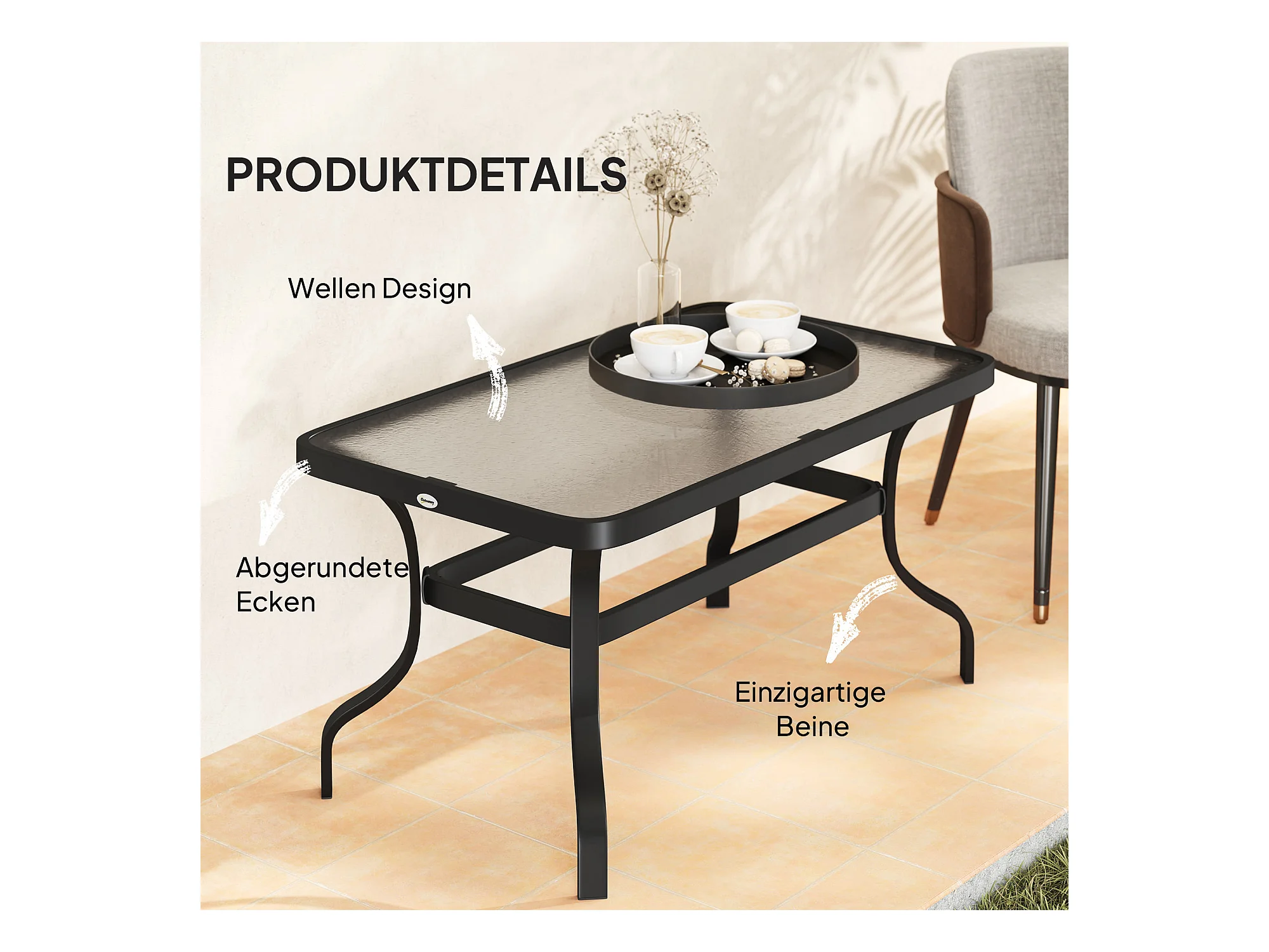 Table de jardin pliante, design moderne avec motifs découpés, acier, noir (70x70x72cm)