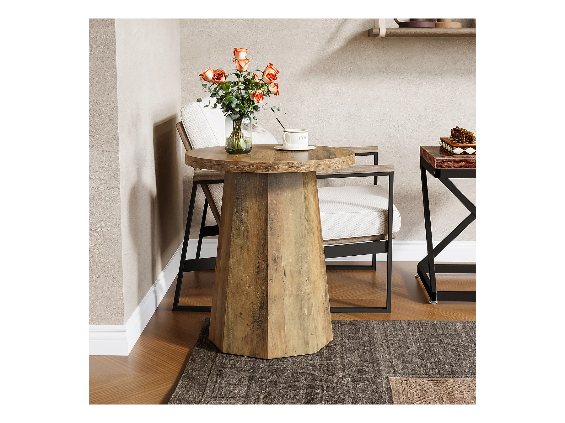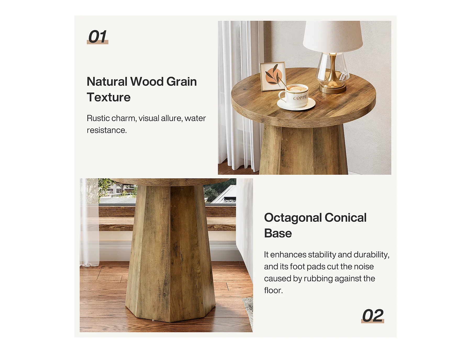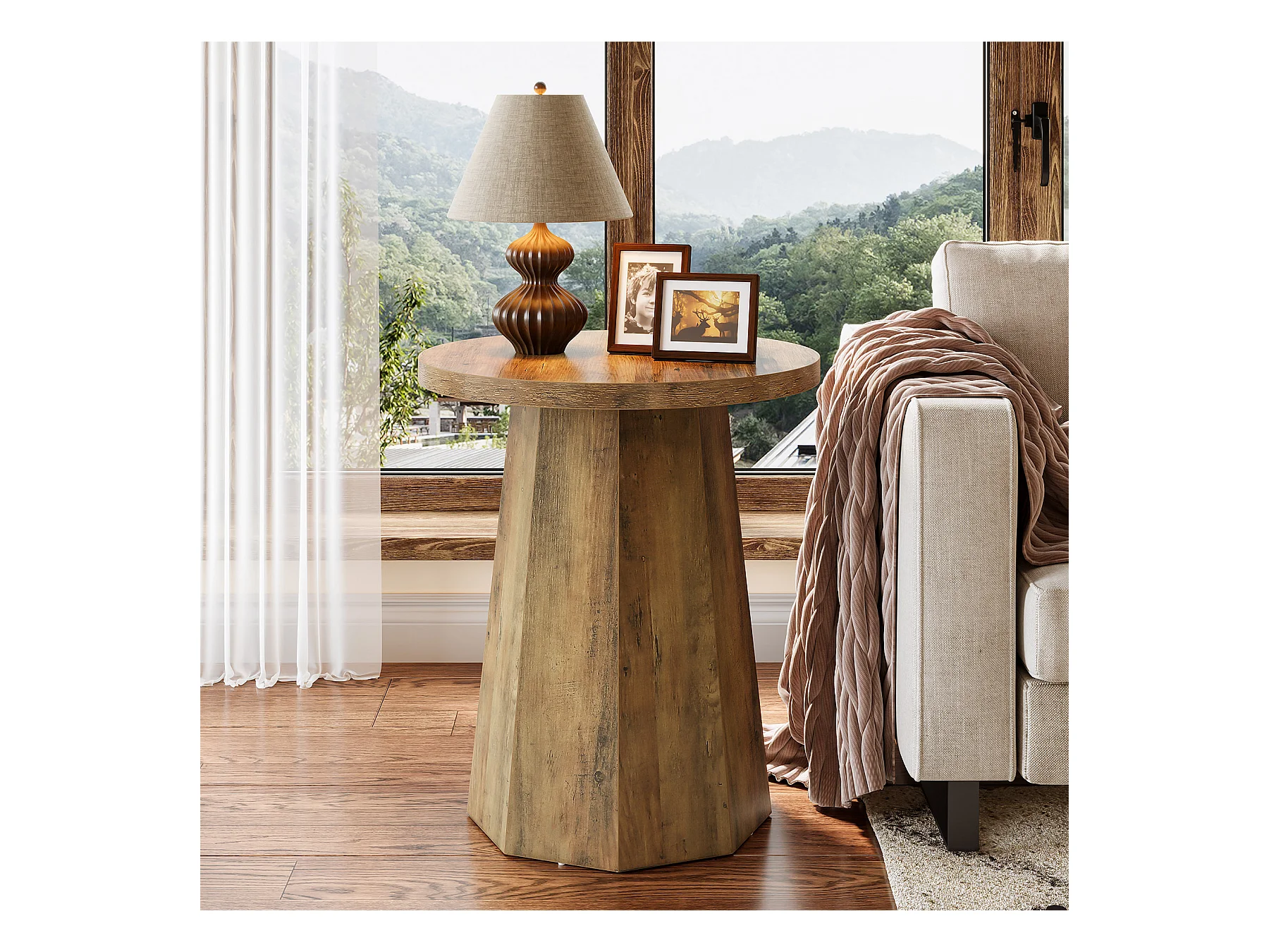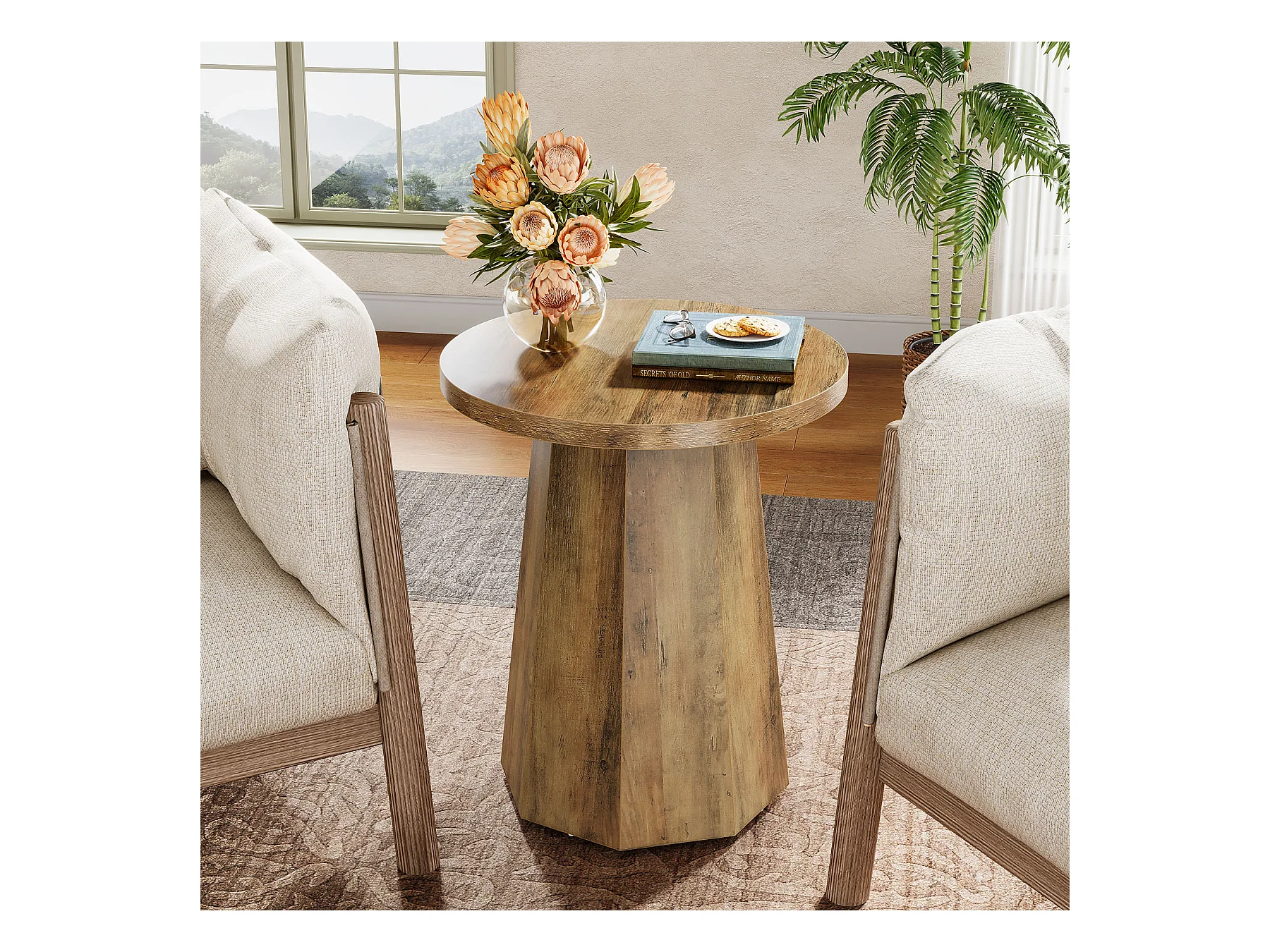 Table d'appoint ronde en bois avec socle octogonal - Base rustique marron - Meuble accentué pour salon, chambre à coucher (1)