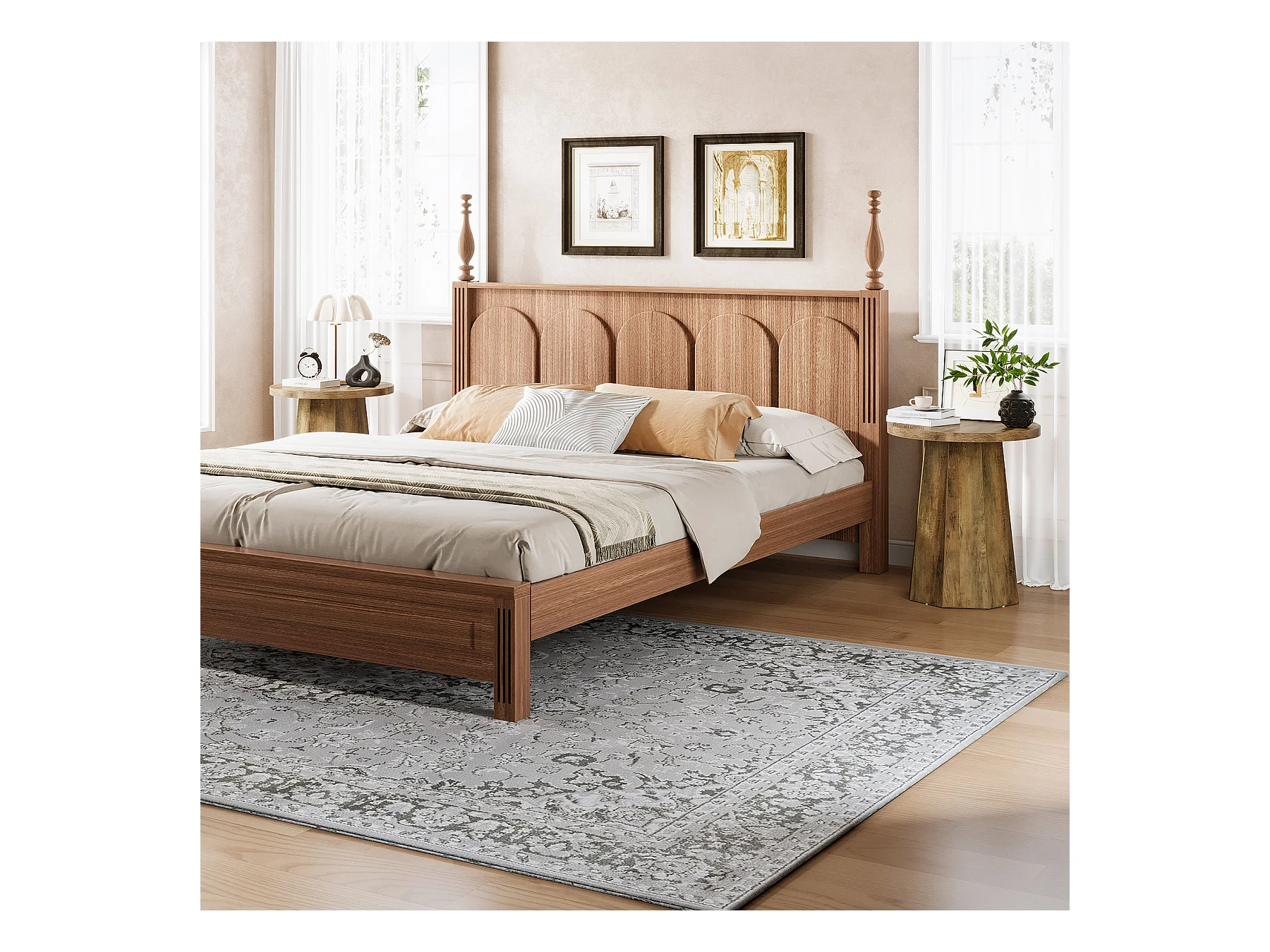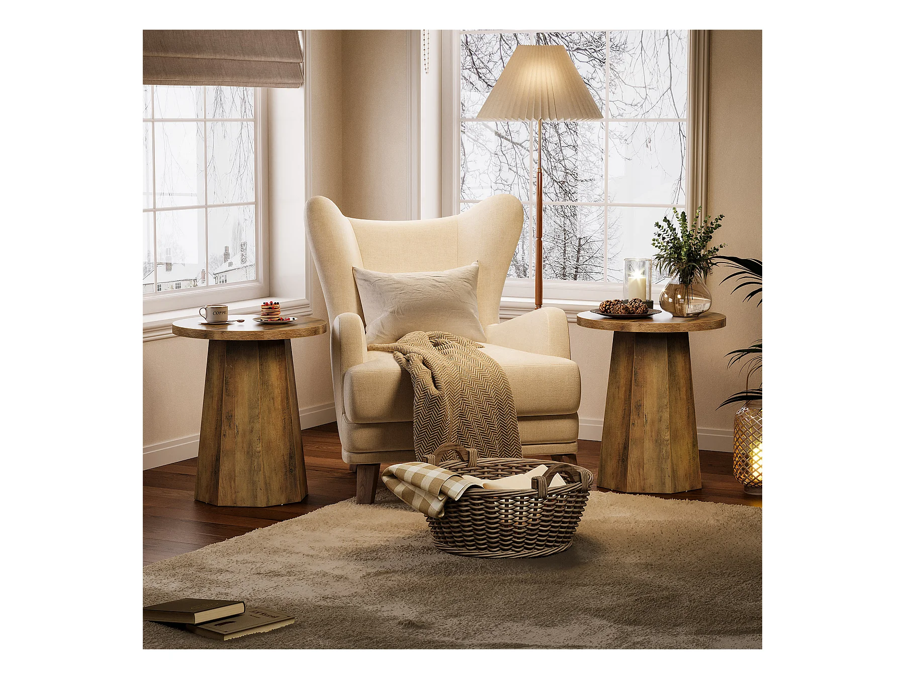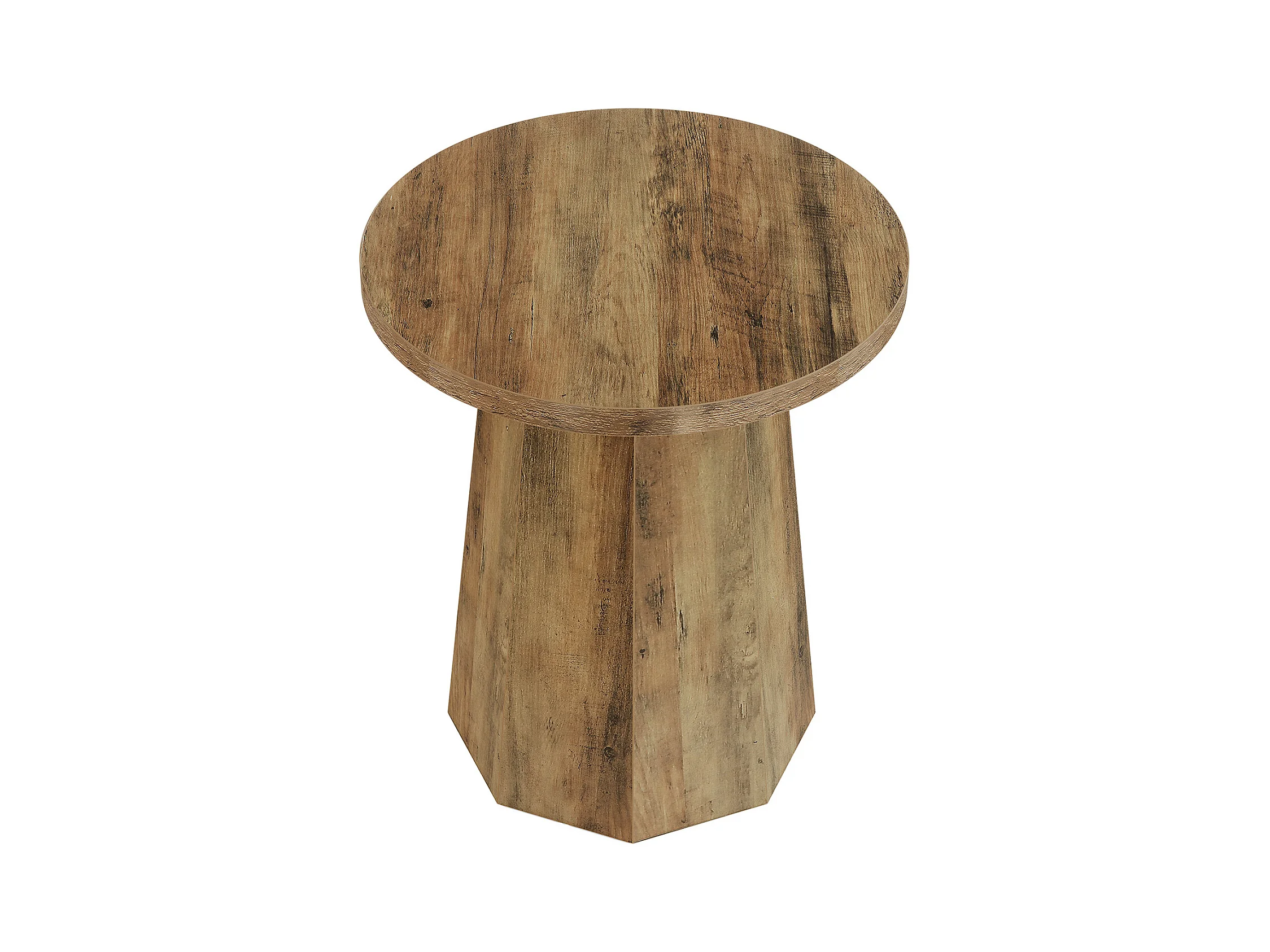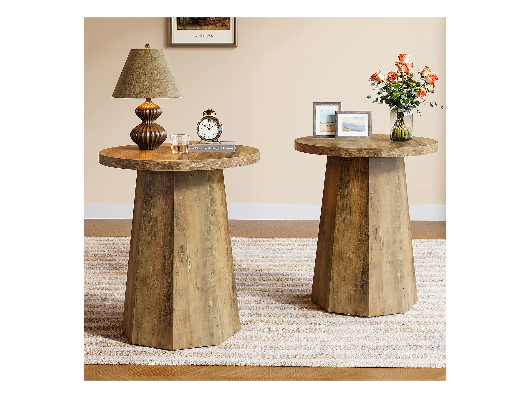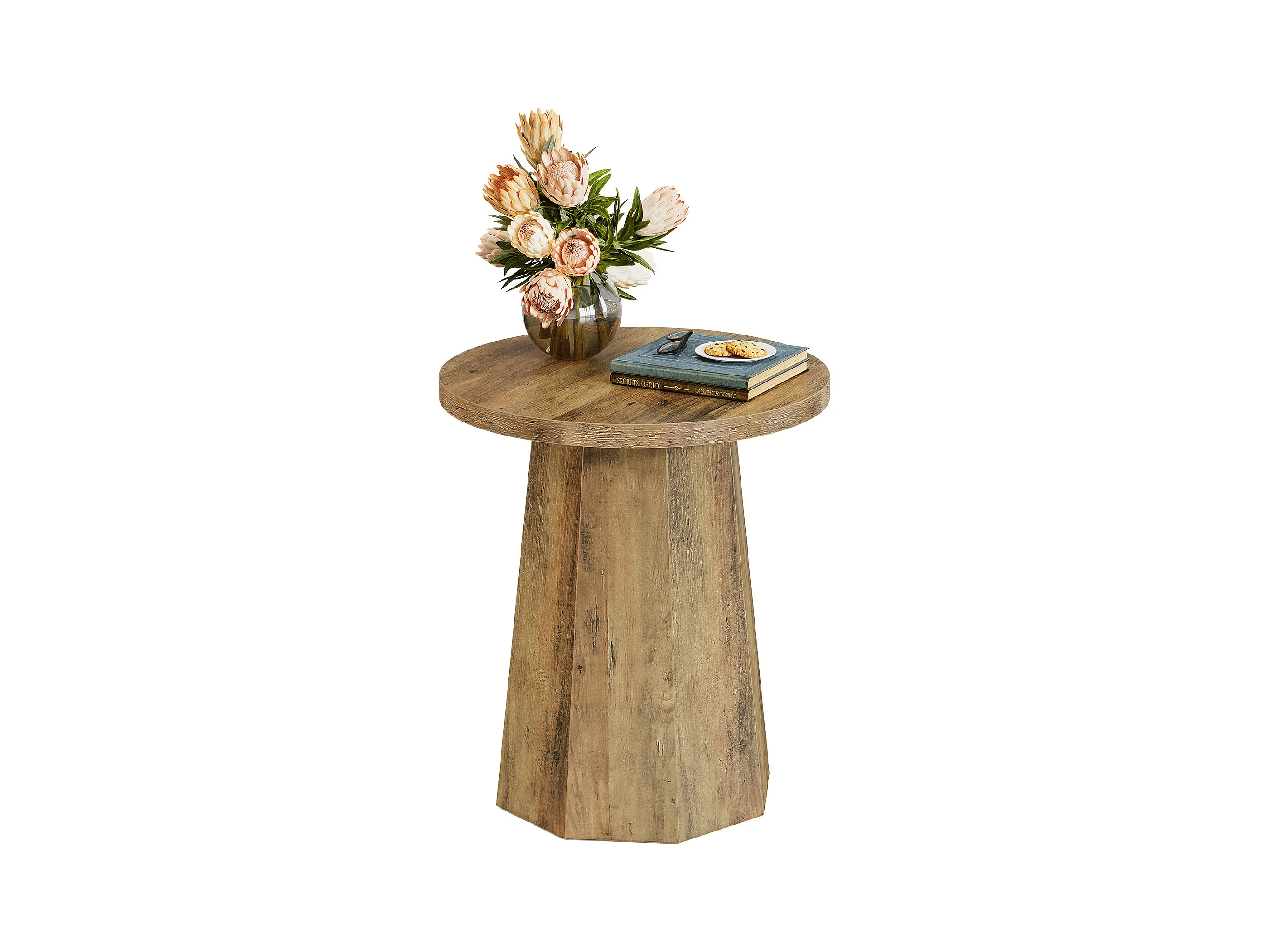 Table d'appoint ronde en bois avec socle octogonal - Base rustique marron - Meuble accentué pour salon, chambre à coucher (1)