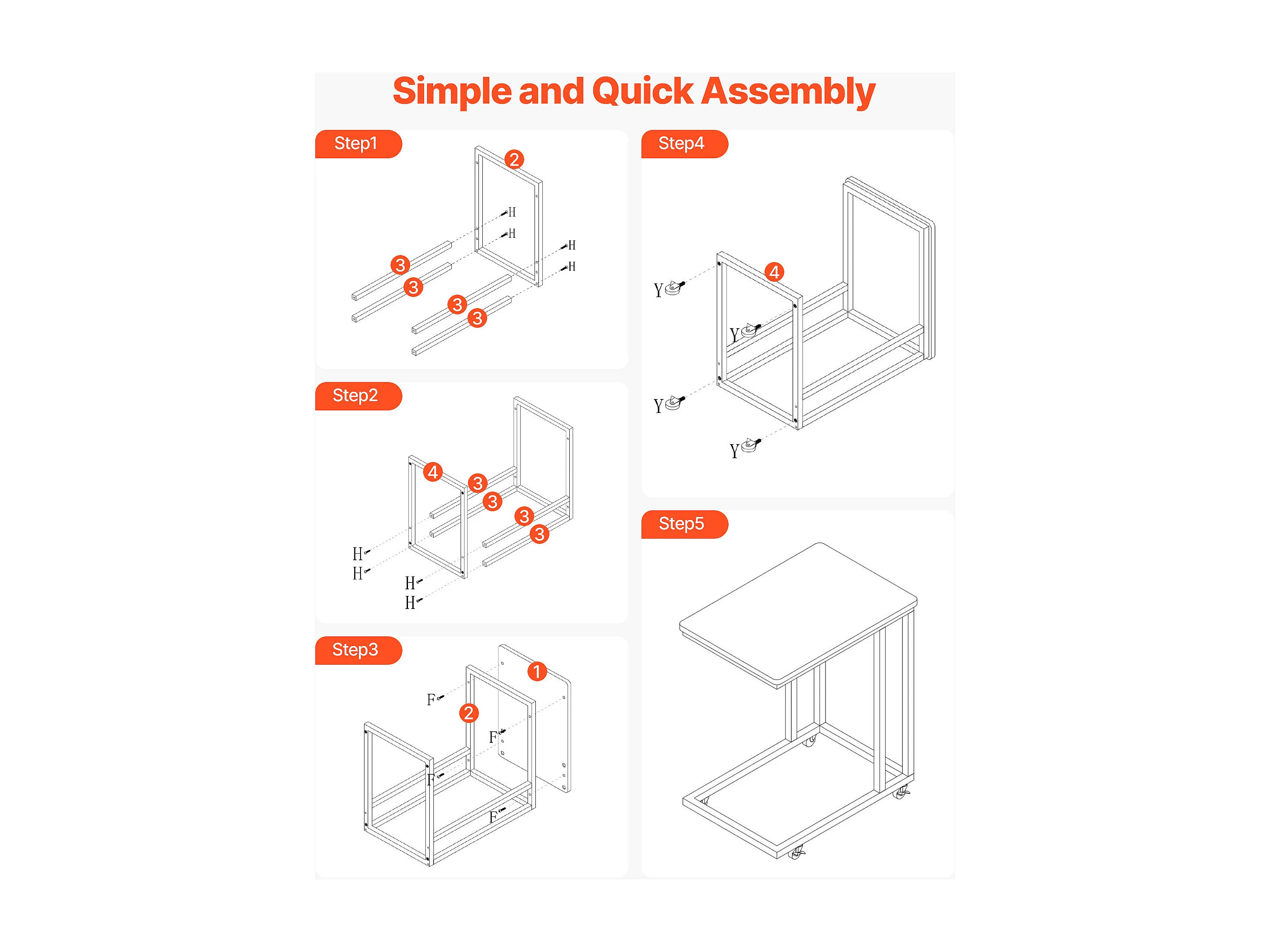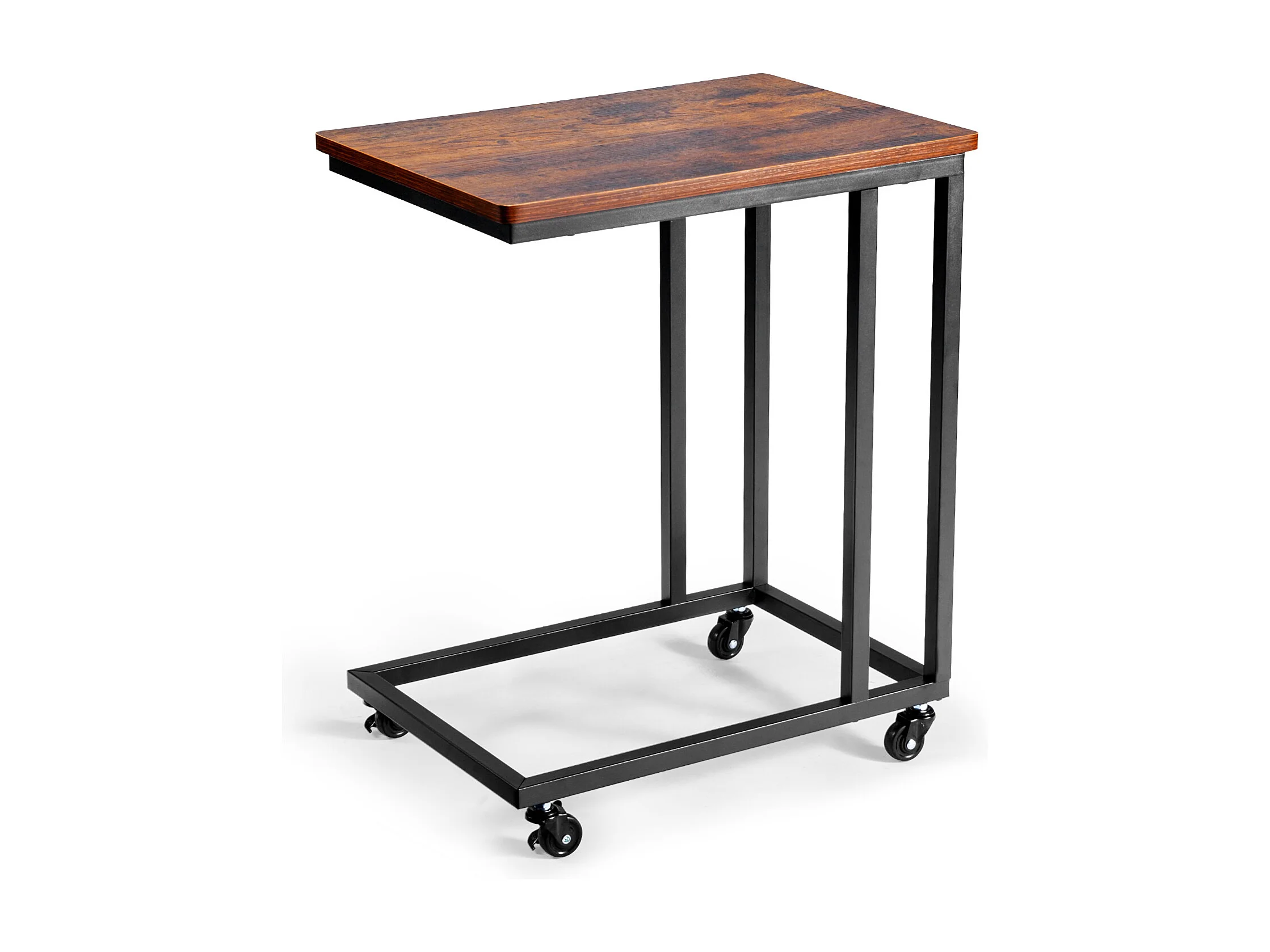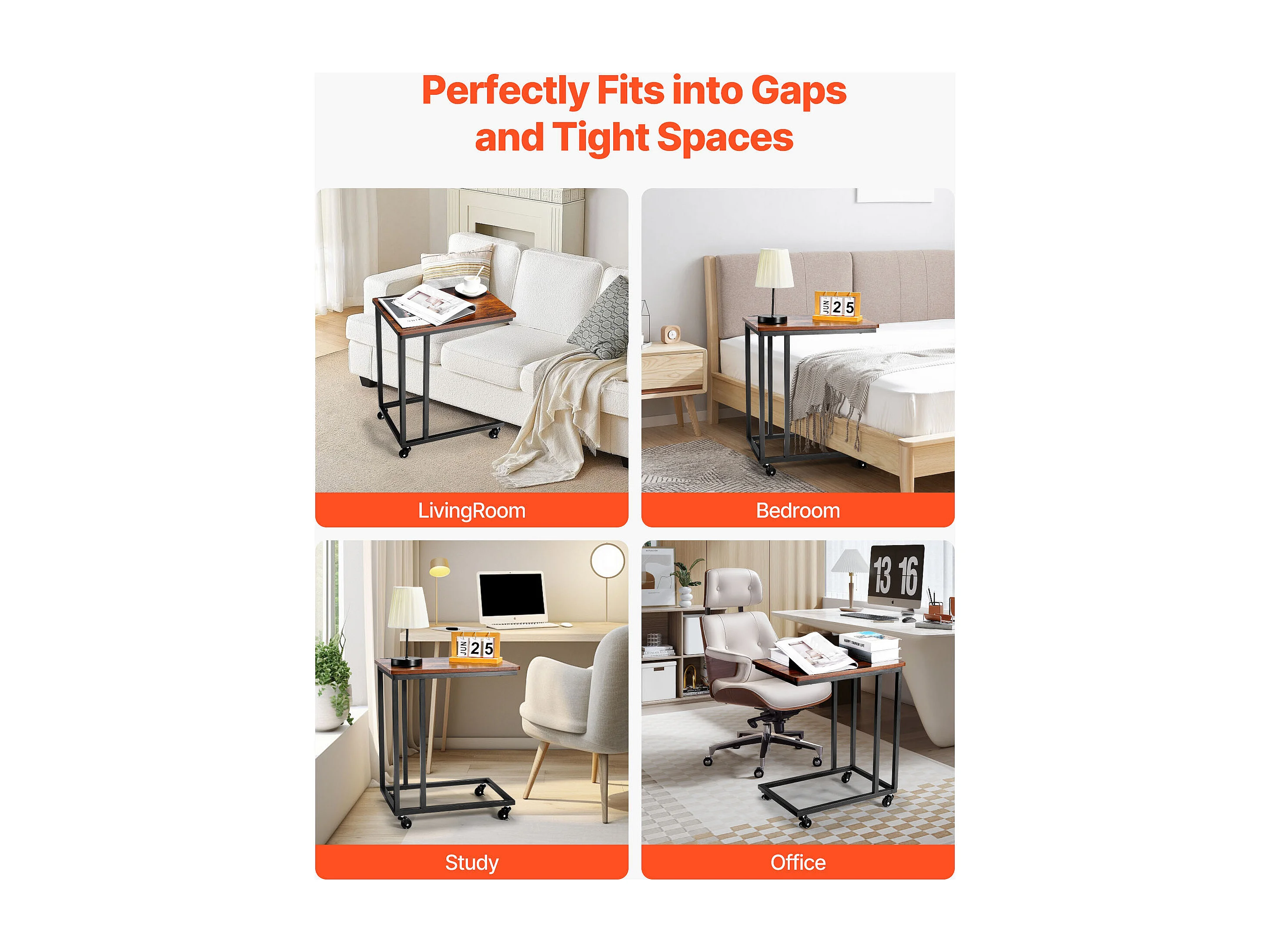 Table d’Appoint SucceBuy Mobile en Forme de C, Bouts de Canapé avec Cadre en Métal et Roulettes, Support d’Extrémité Portable 50 x 35 x 60.5 cm, Marron
