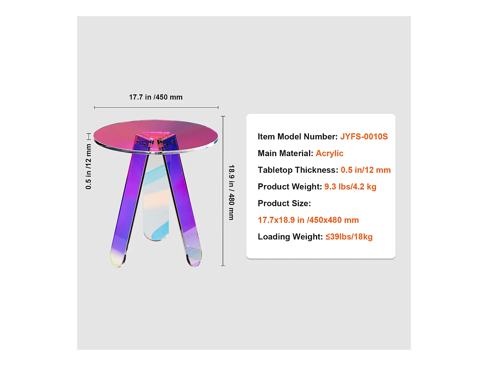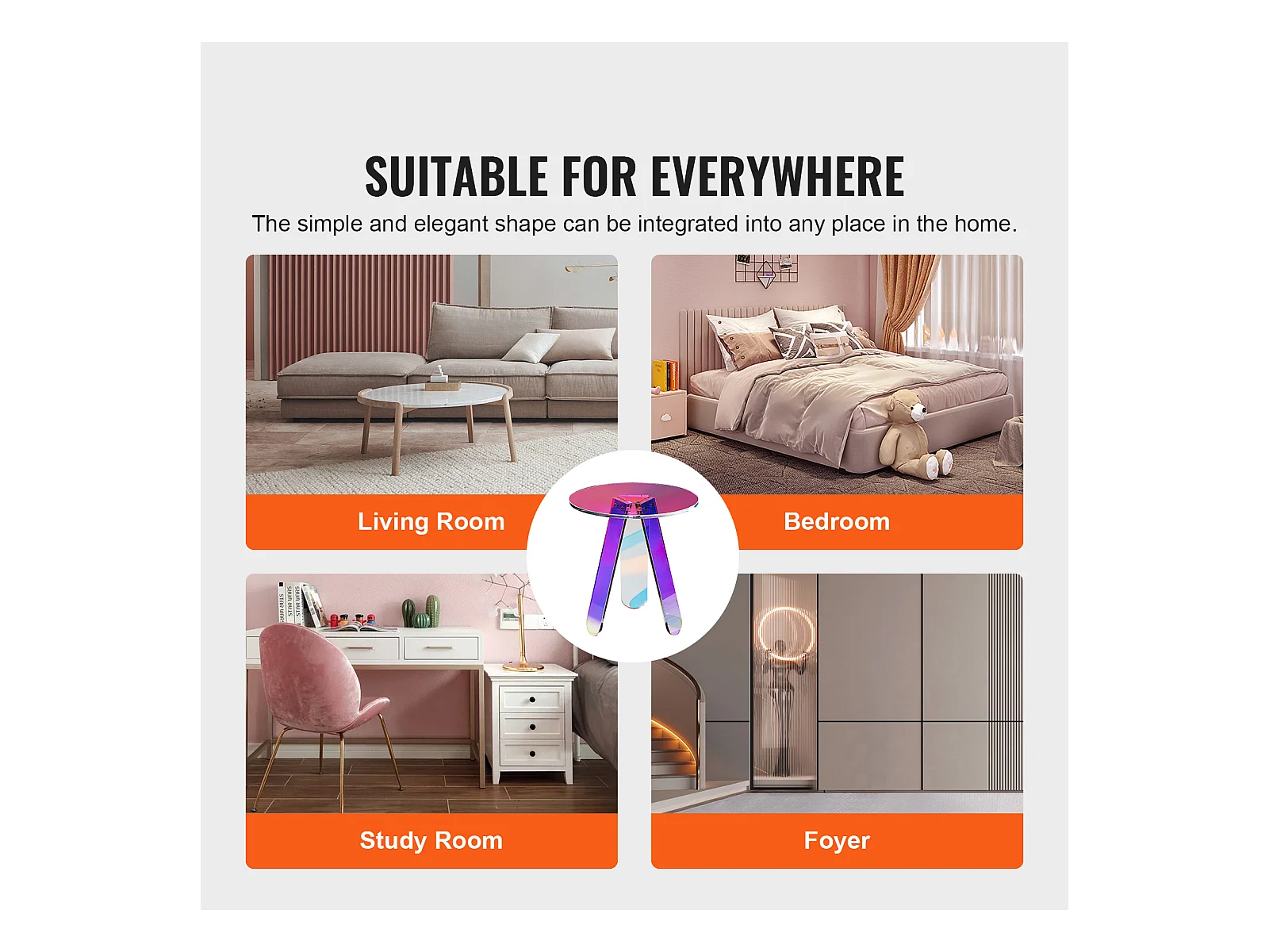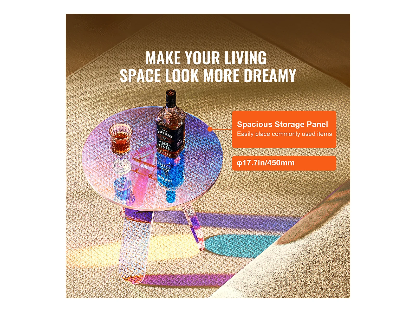 Table d'Appoint SucceBuy Ronde Irisée, Table d'Appoint en Acrylique Transparent pour Boissons, Nourriture, Collations dans le Salon, la Chambre