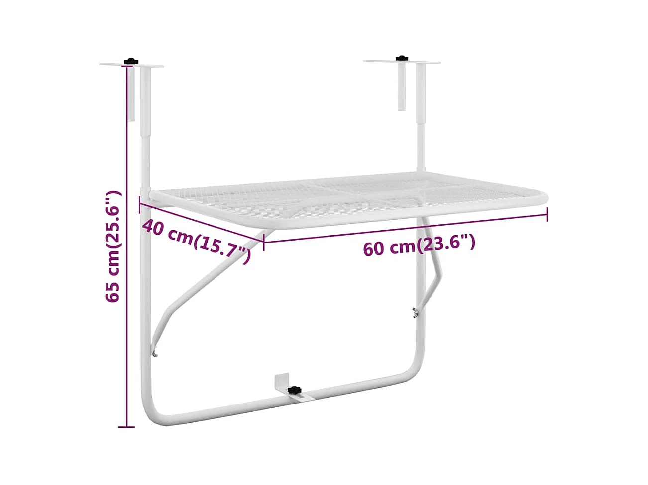 Table Suspendue de Balcon Blanc 60 x 39 x 65 cm Acier