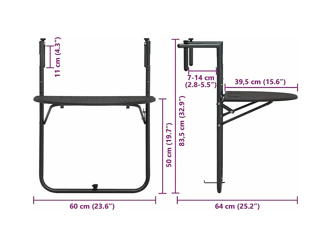 Table de balcon Marron 60x64x83,5 cm Plastique Aspect de rotin