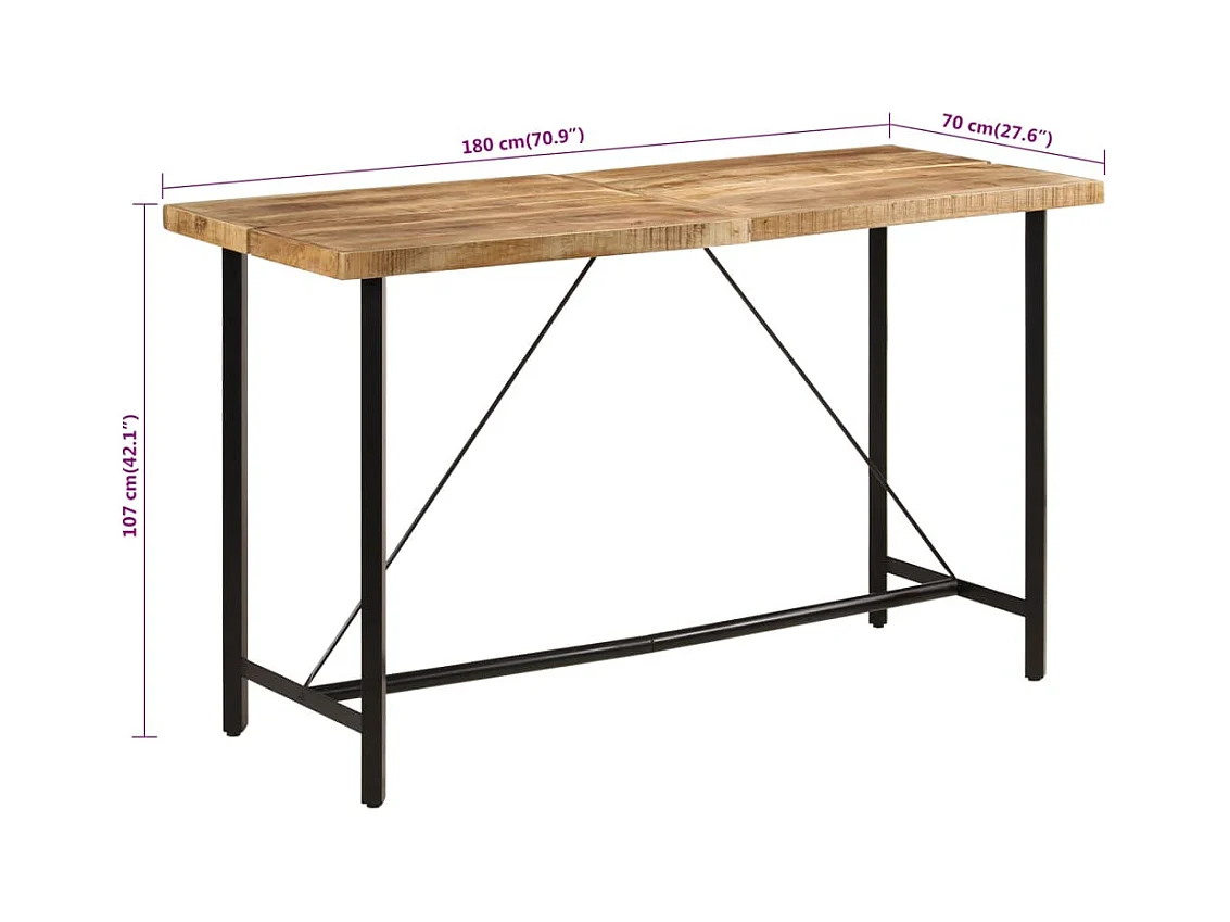Table de bar 180x70x107 cm bois massif de manguier et fer