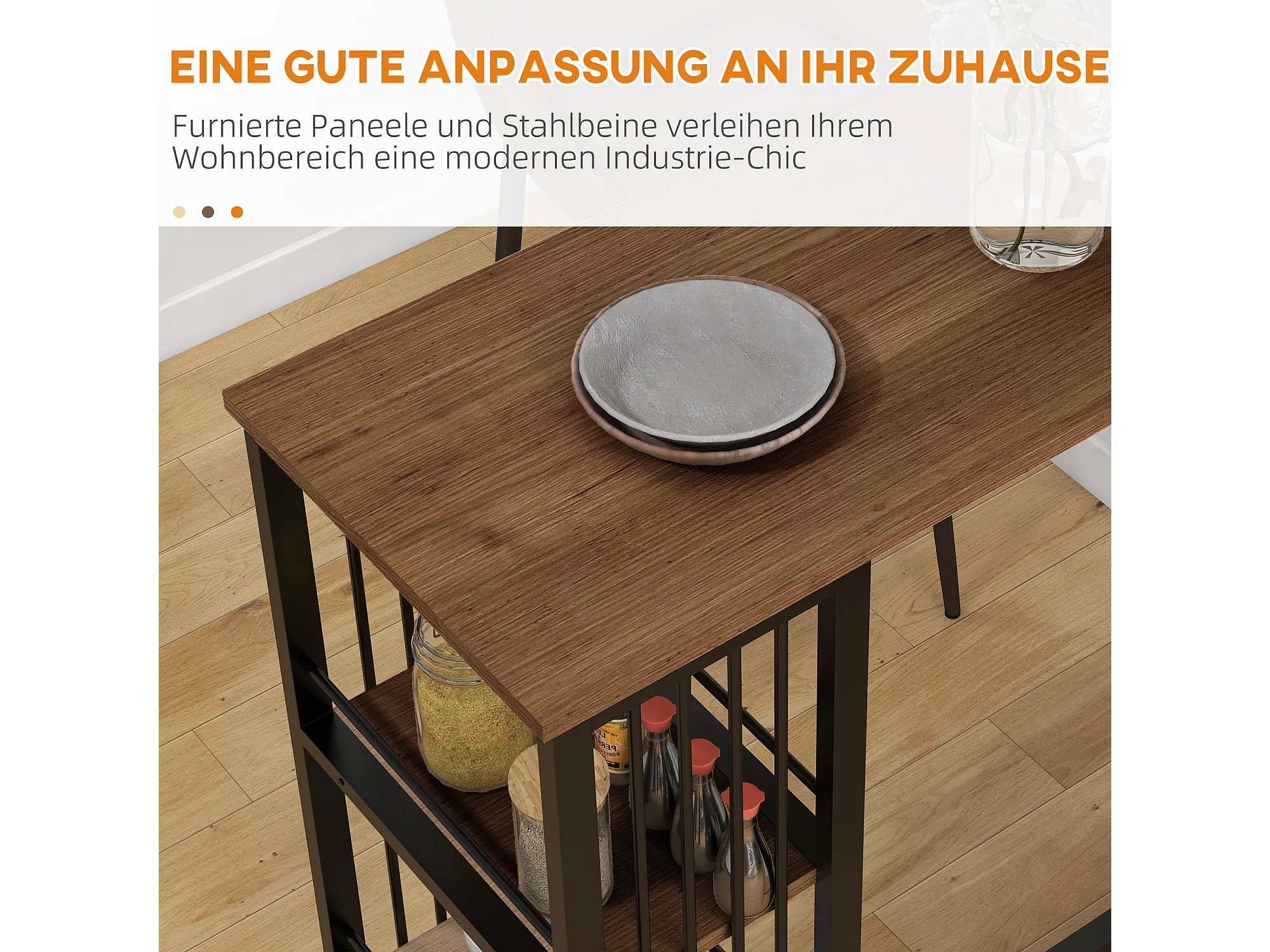 Table de bar avec 3 étagères, plateau effet bois, structure acier brun (120x40x105cm)
