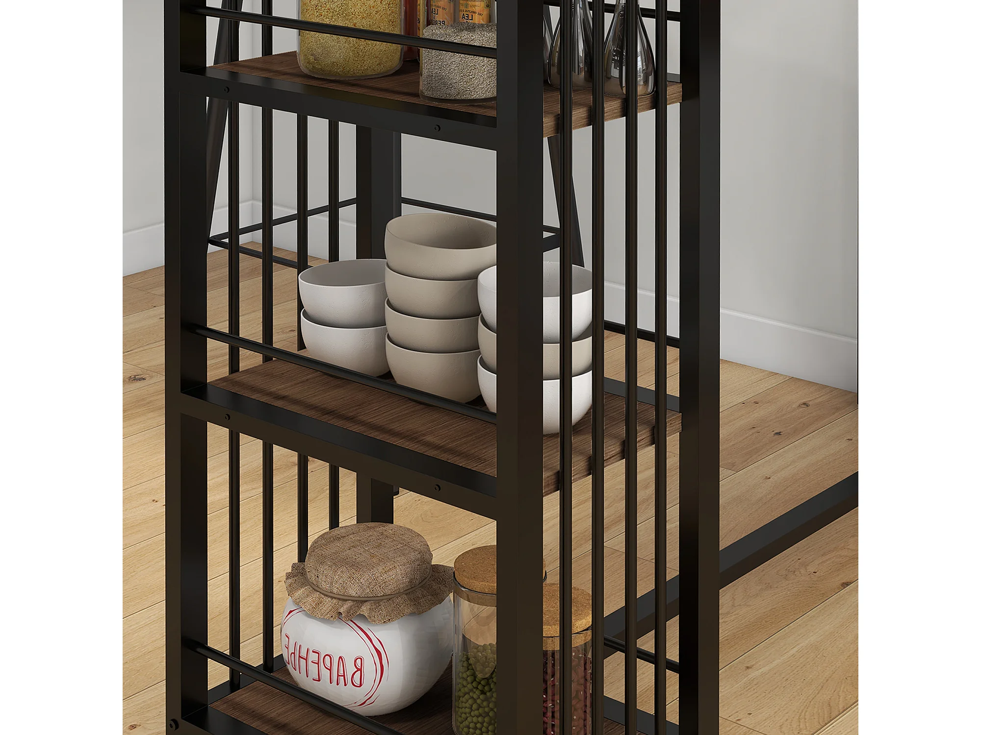 Chariot de cuisine avec plan de travail, étagères, porte-bouteilles, en chêne, 83x40x83 cm