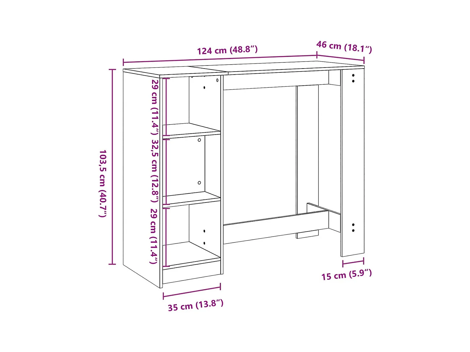 Table de bar avec étagère chêne artisanal bois d'ingénierie