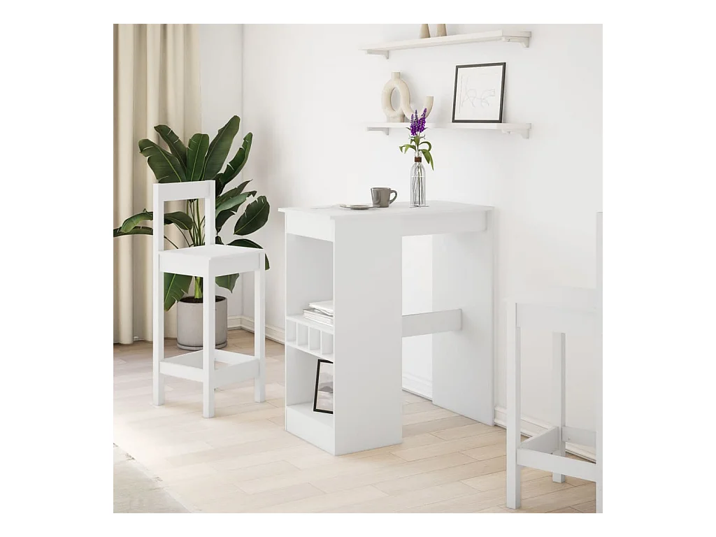 Table de bar et étagères blanc 90x40x103,5 cm bois d'ingénierie