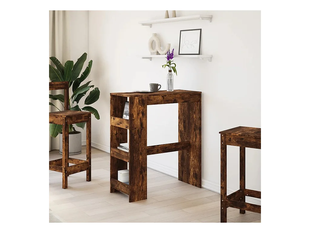 Table de bar avec étagères chêne fumé bois d'ingénierie
