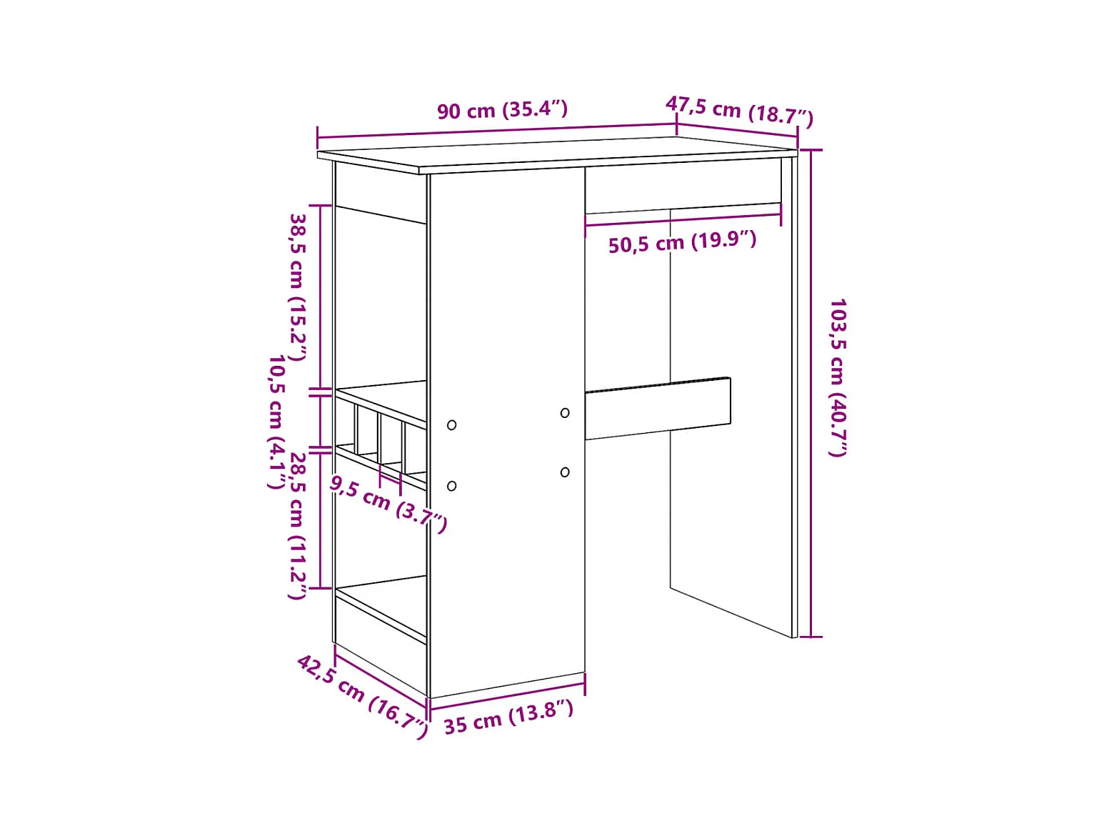 Table de bar avec étagères chêne artisanal bois d'ingénierie