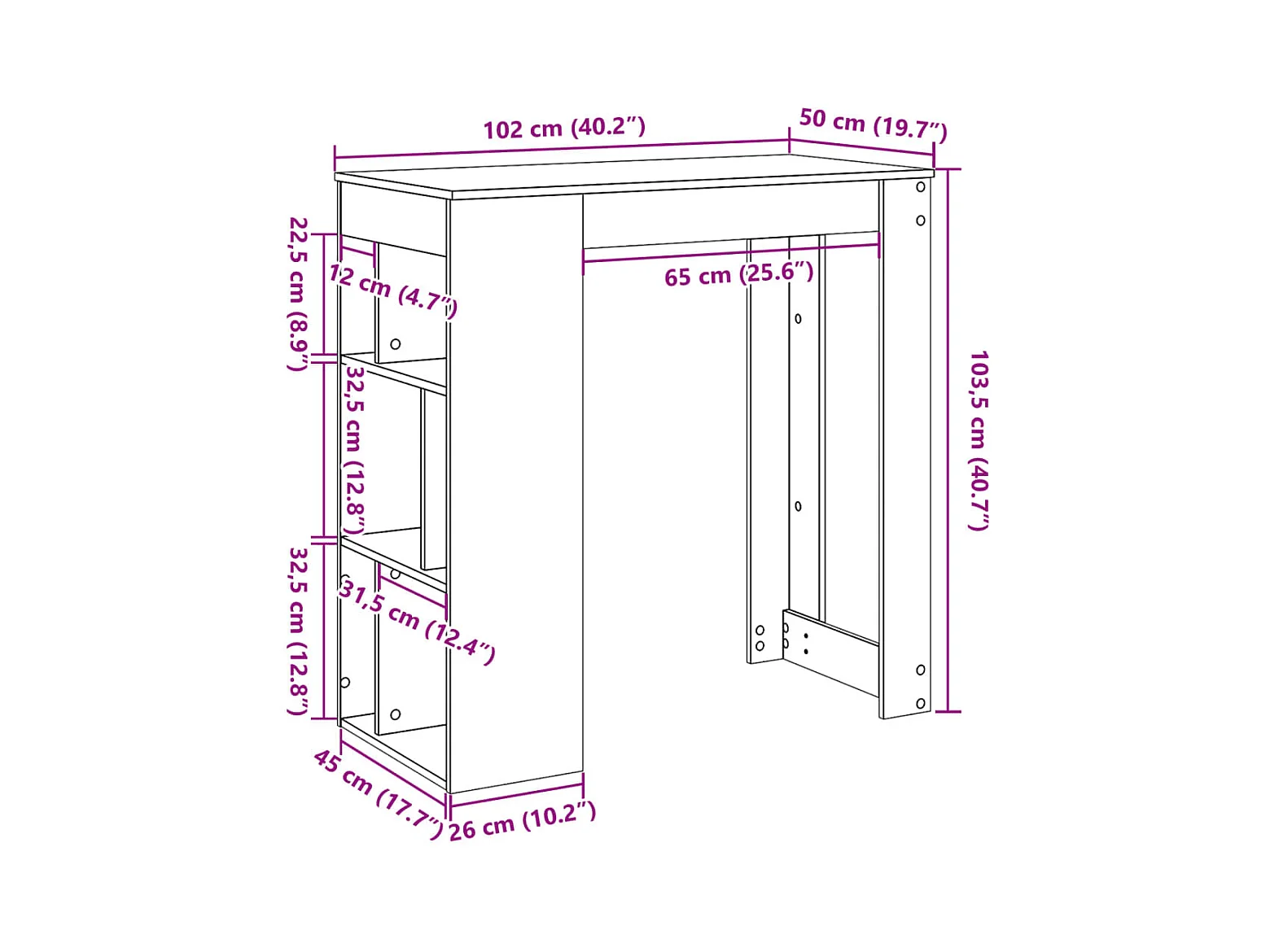 Table de bar avec rangement Sonoma gris 102x50x103,5 cm