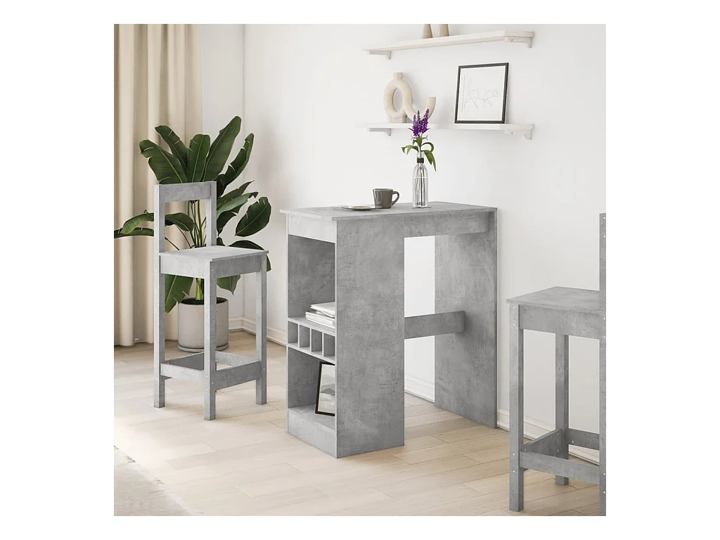 Table de bar avec étagères gris béton bois d'ingénierie
