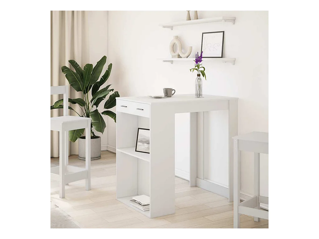Table de bar avec rangement Blanc 102x50x103,5 cm Aggloméré