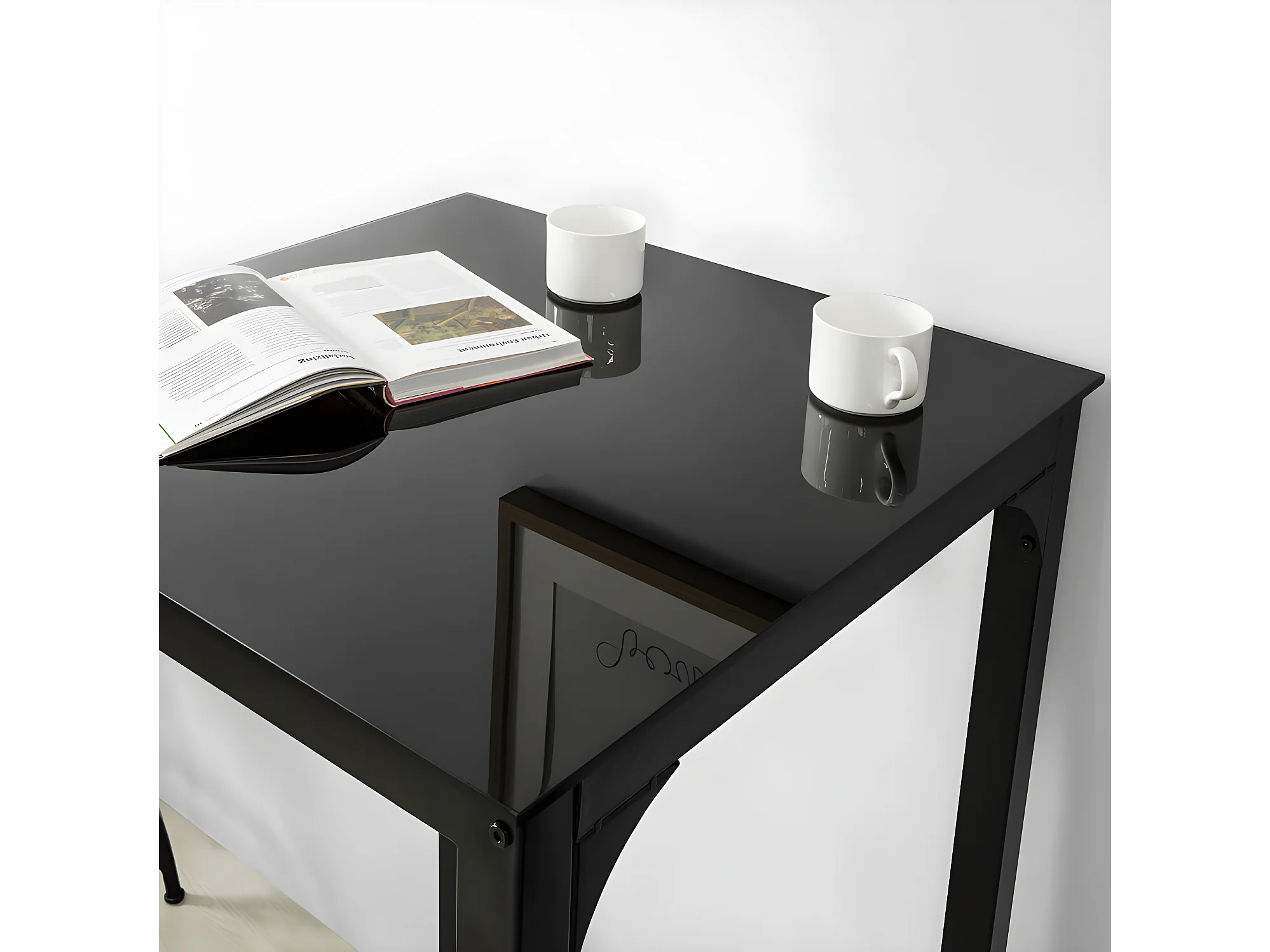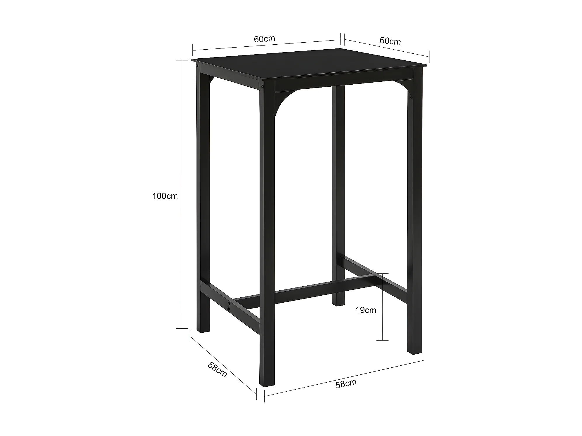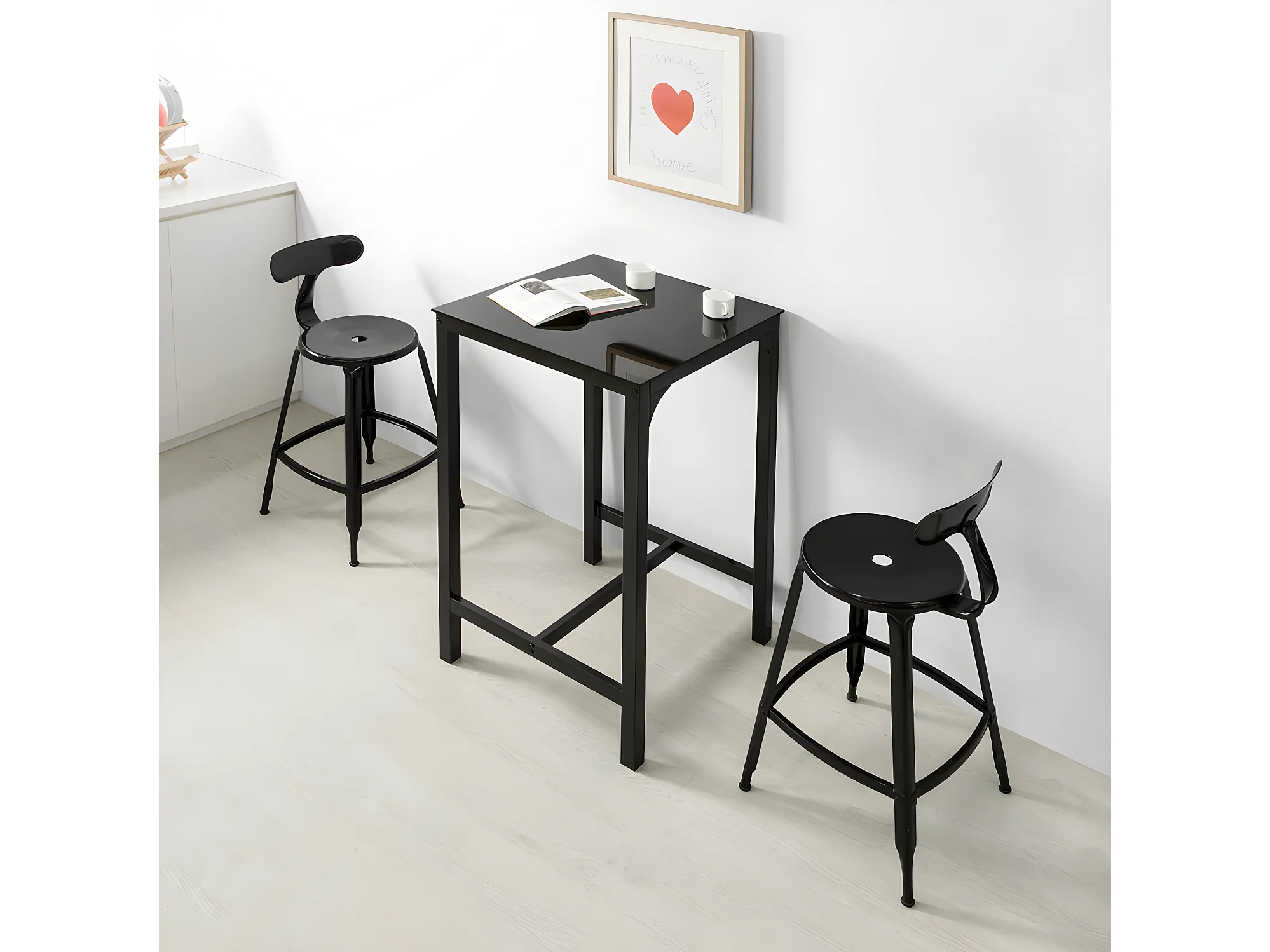 Table De Bar Carrée Table De Salle À Manger Plateau En Verre Pieds En Acier Robuste Noir, Ogt38-sch