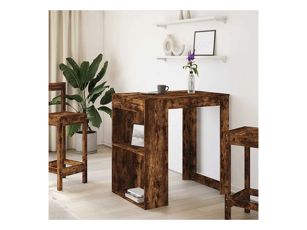 Table de bar chêne fumé 102x70x103,5 cm bois d'ingénierie