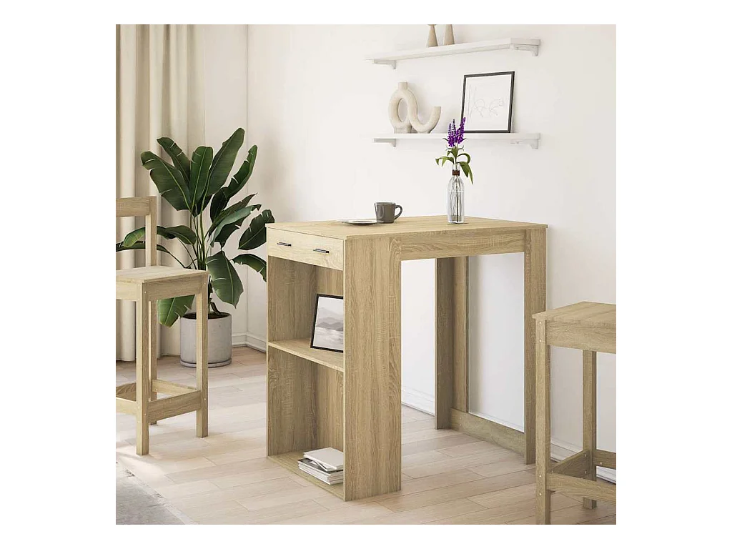 Table de bar avec étagère chêne artisanal bois d'ingénierie