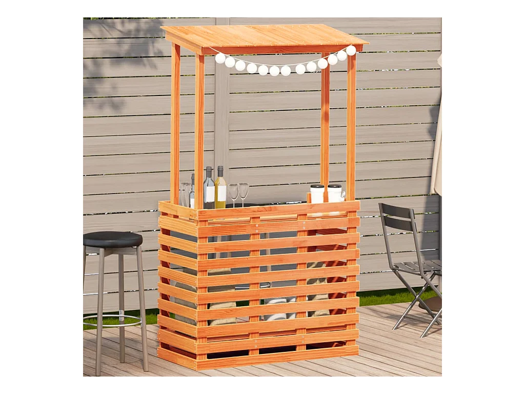 Table de bar d'extérieur et toit 112,5x57x195,5 cm bois massif