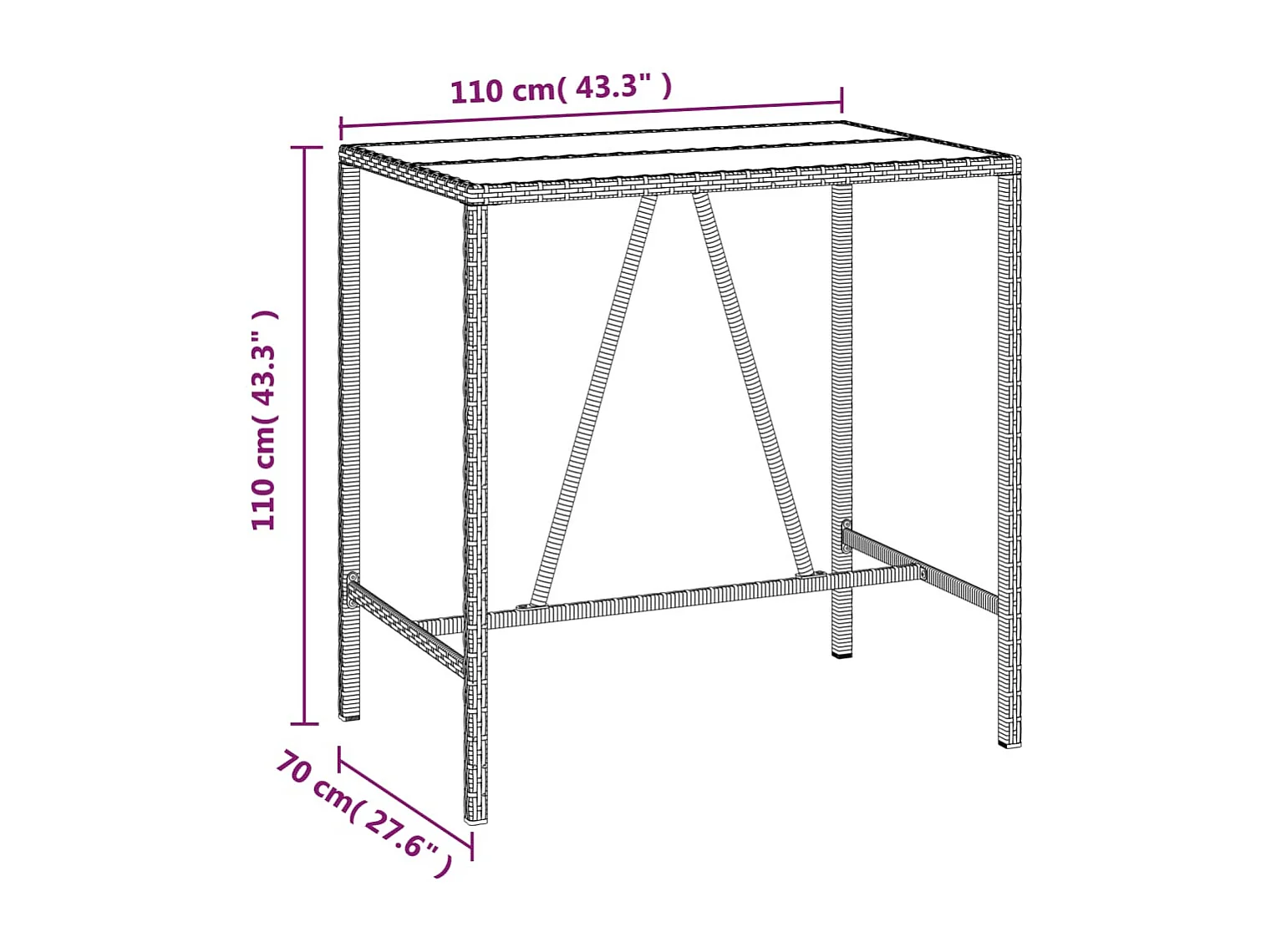 Table de bar et dessus en verre gris 110x70x110 cm poly rotin